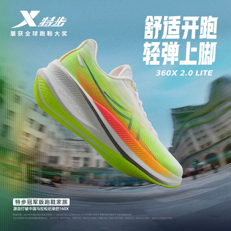 特步女鞋360X2.0 LITE运动鞋2025春款网面碳板跑步鞋975118110014
