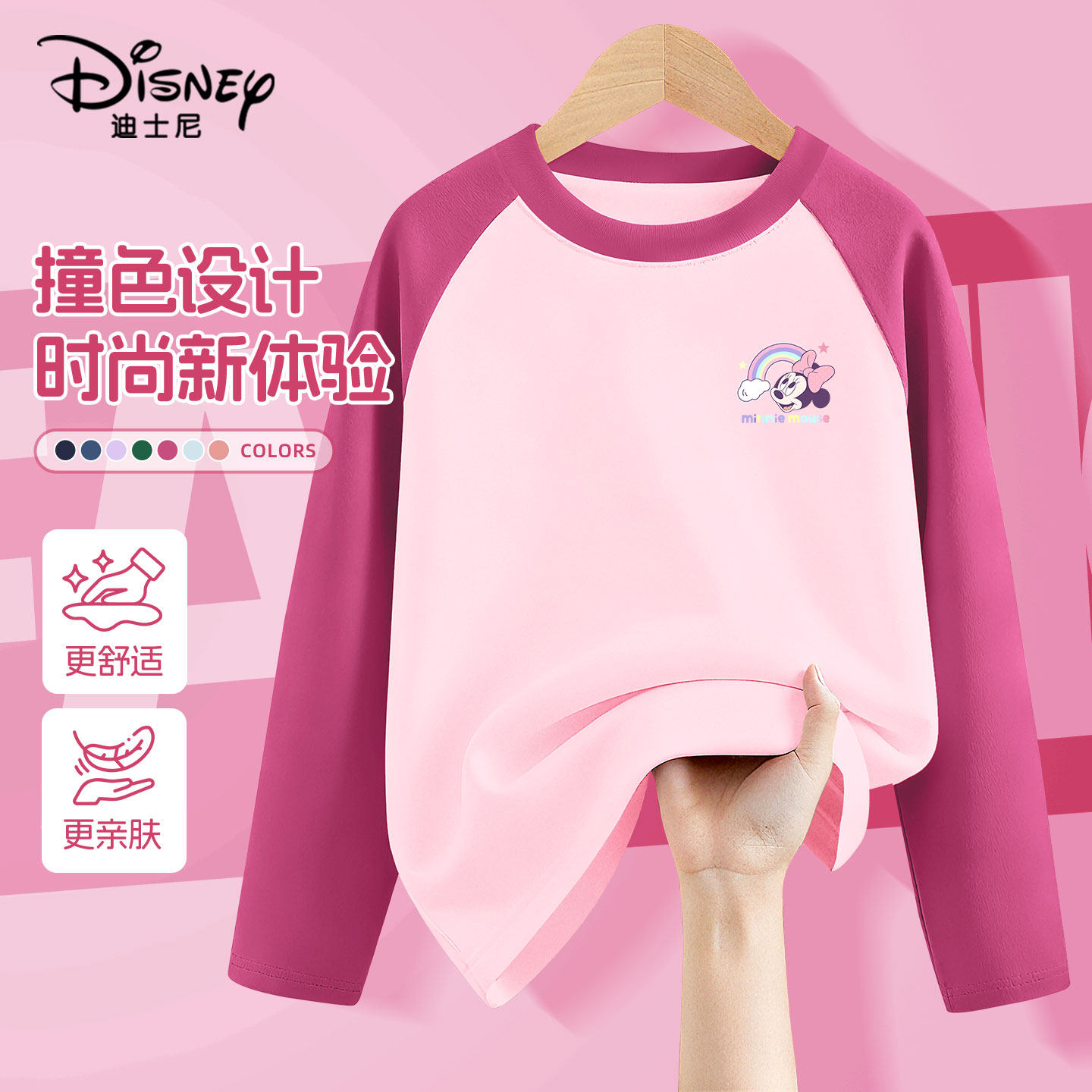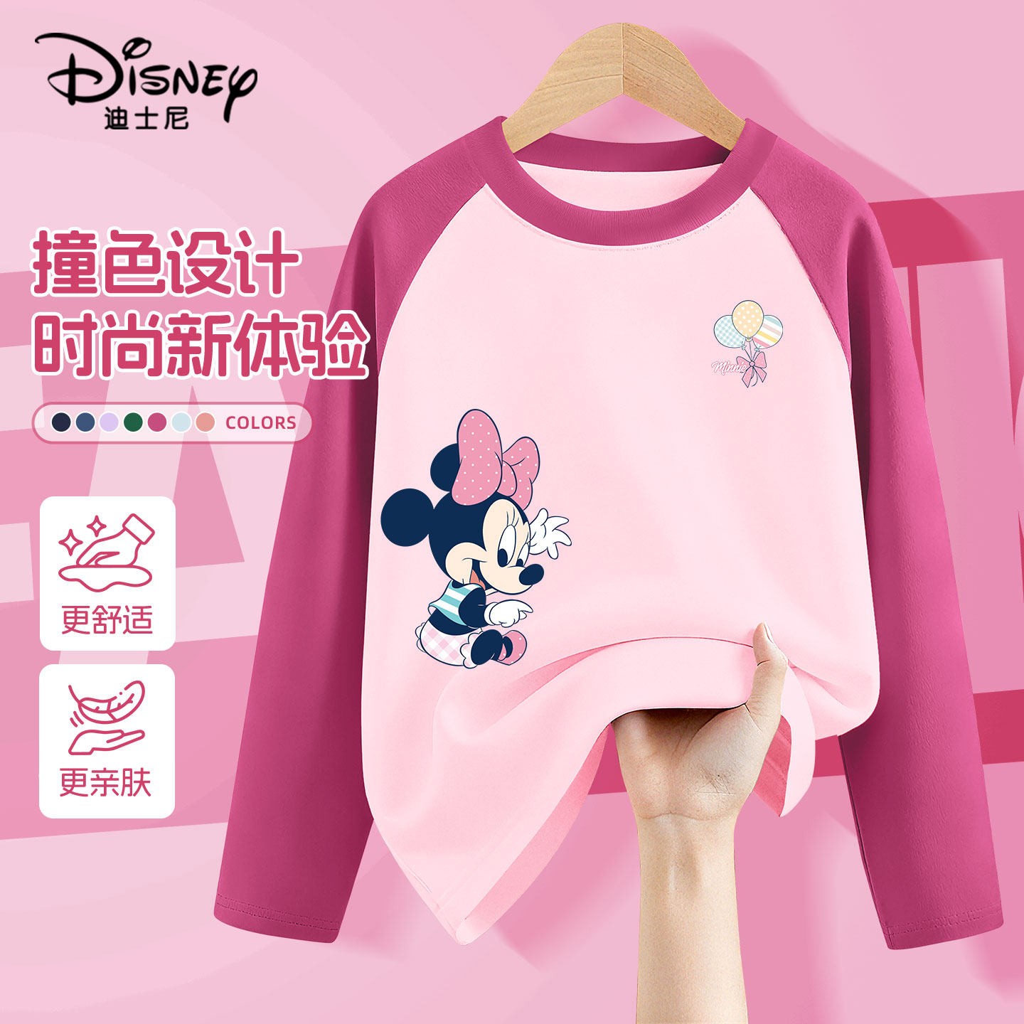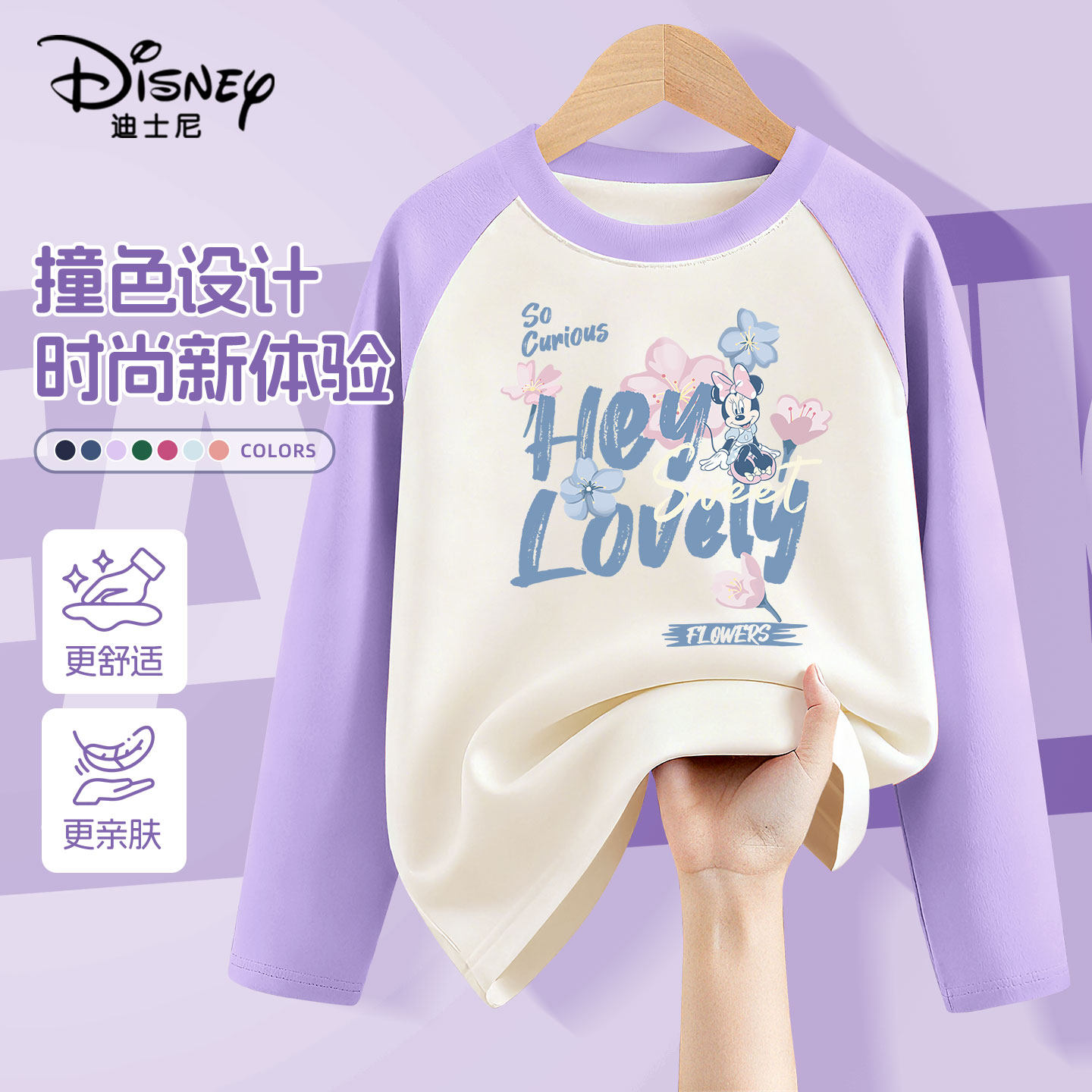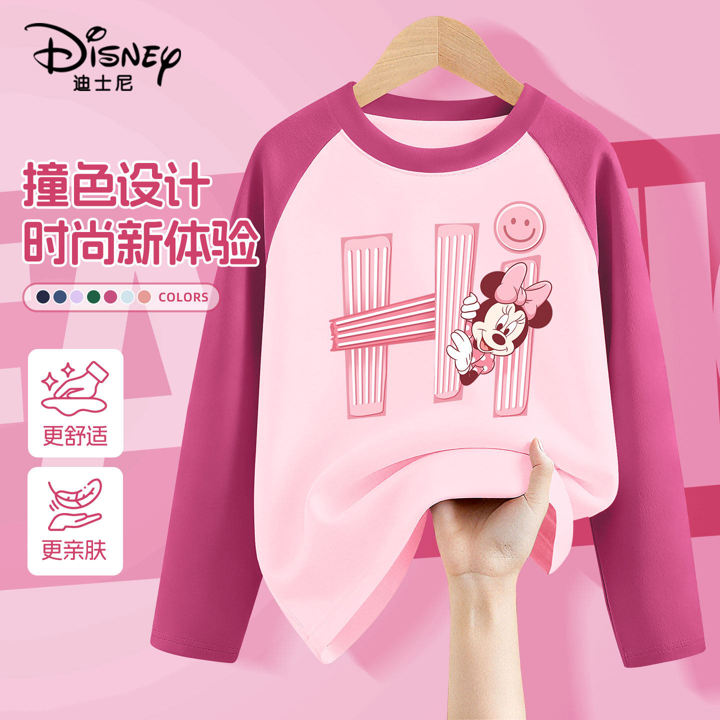 迪士尼女童t恤纯棉春季2026新款女大童韩版圆领上衣薄款儿童衣服
