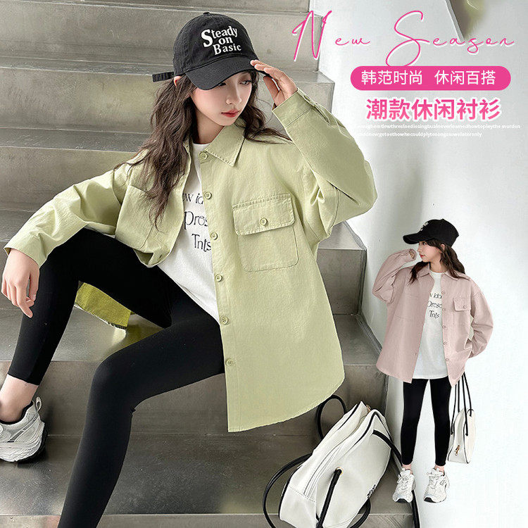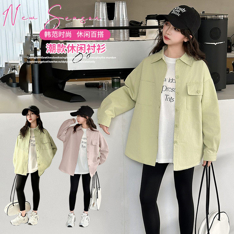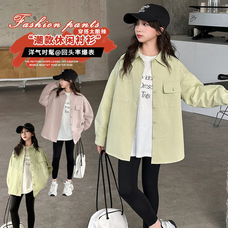 女童衬衫春装2026新款儿童长袖春季中大童薄款休闲外套纯棉上衣服