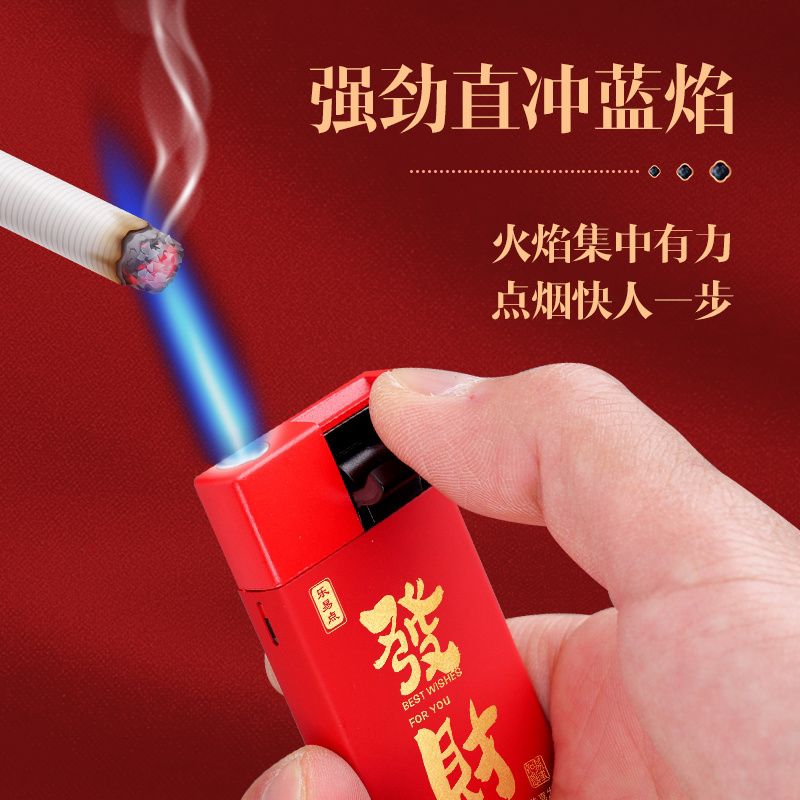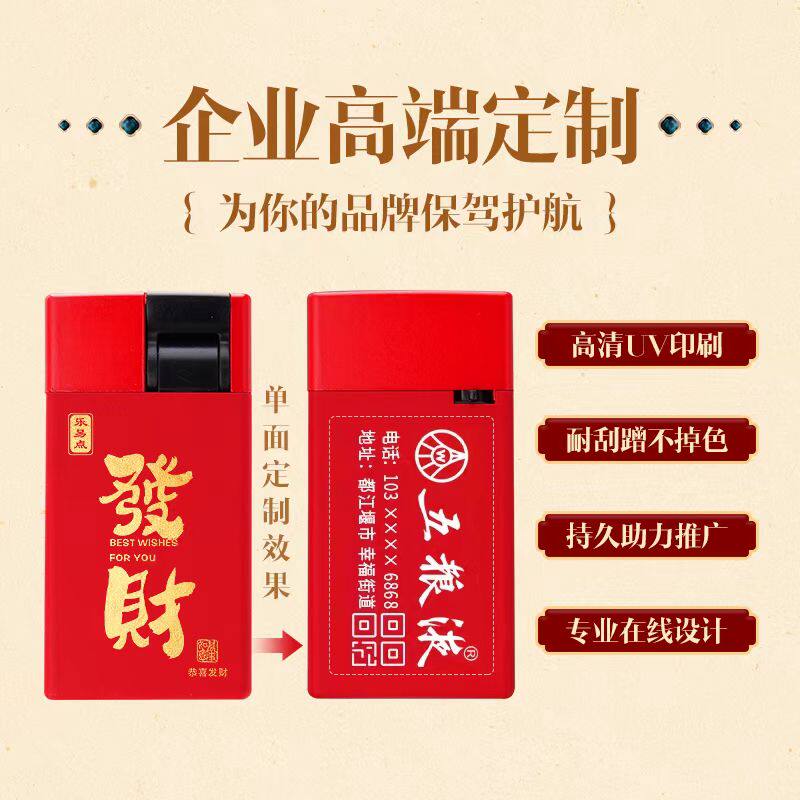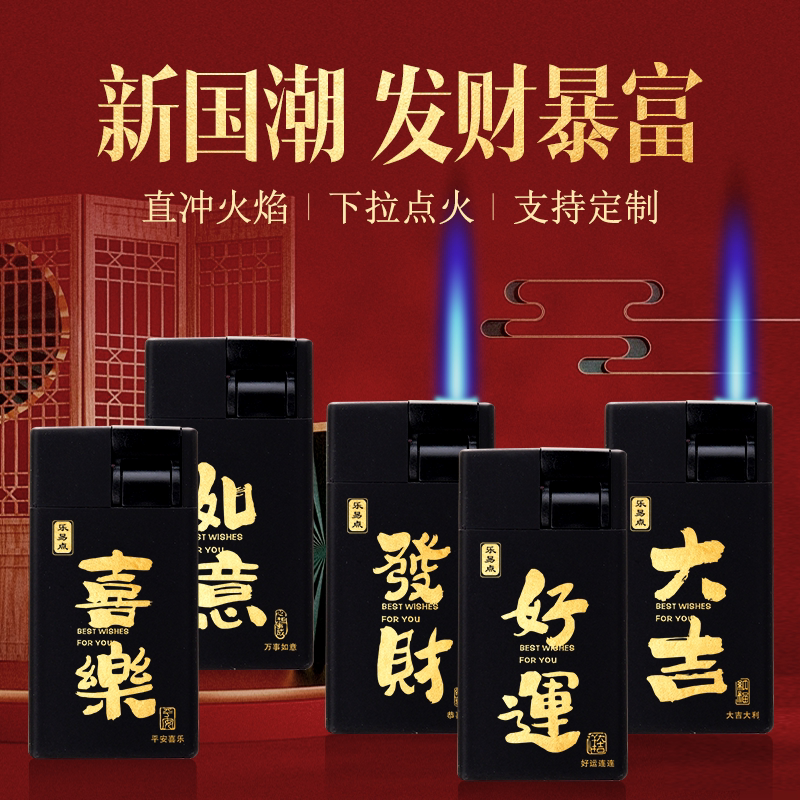 高档磨砂金属国潮红好运发财防风打火机加厚耐用新款定制订做印字