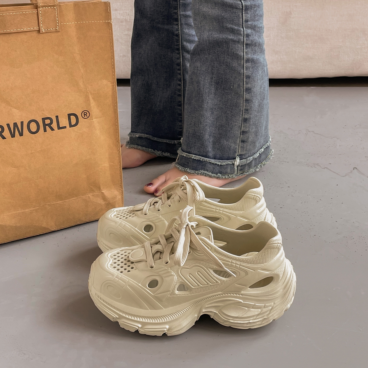 厚底洞洞鞋女款外穿夏季2026新款溯溪沙滩运动老爹鞋防滑增高凉鞋