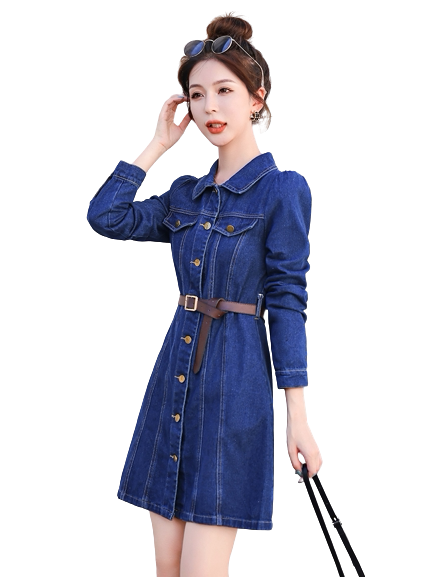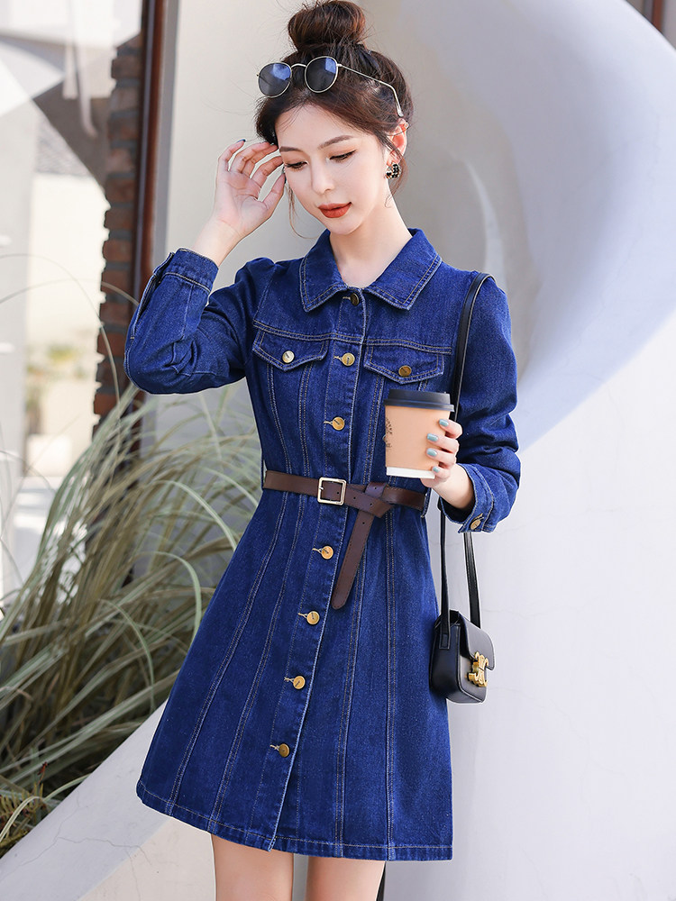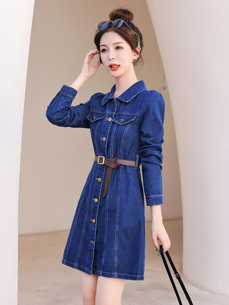复古收腰牛仔连衣裙2026春季新款气质显瘦高腰长袖a字短款裙子女