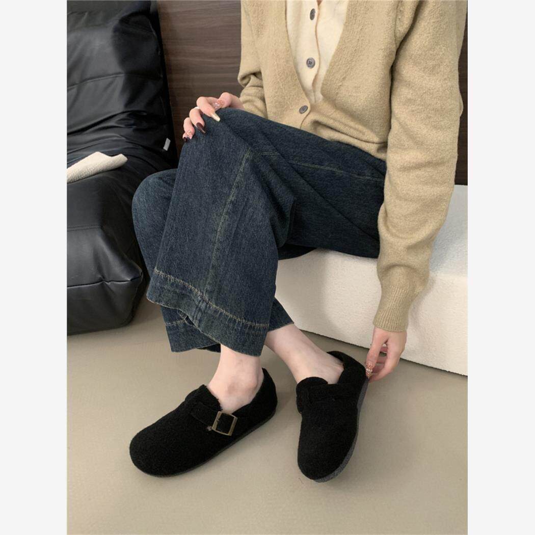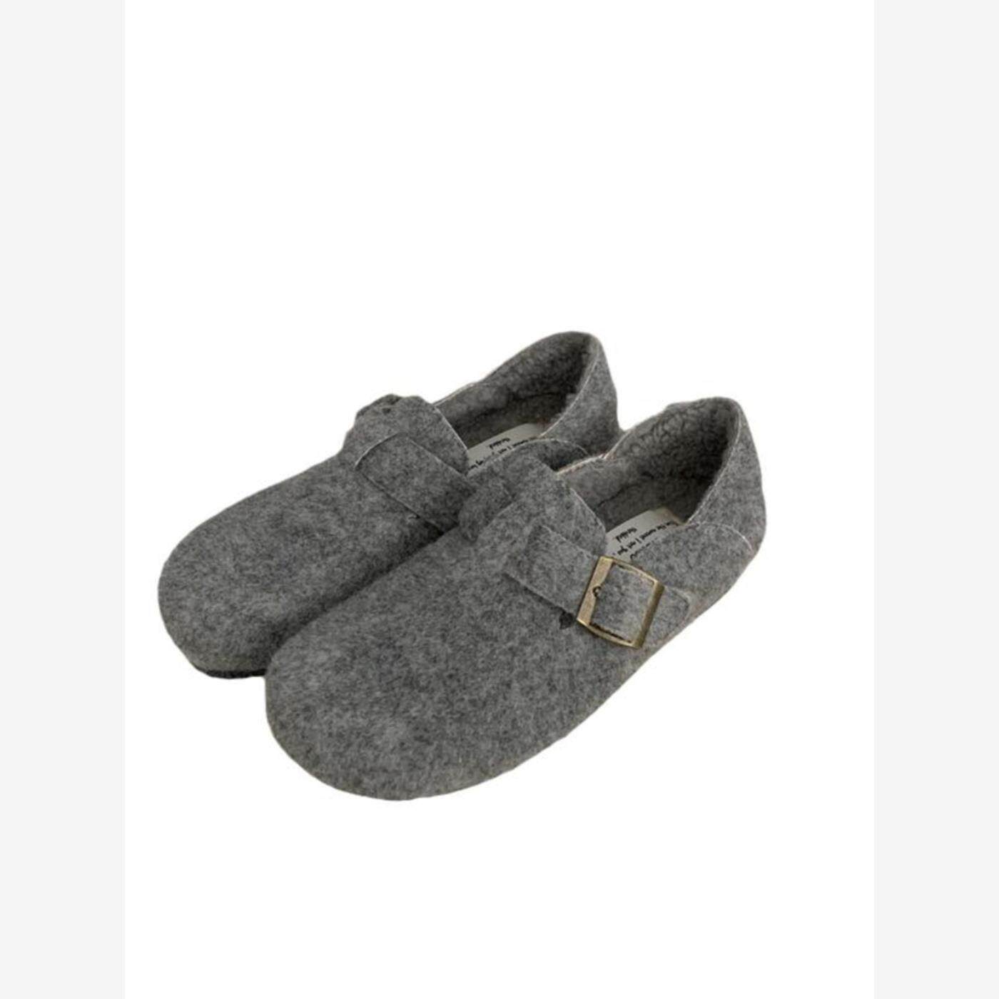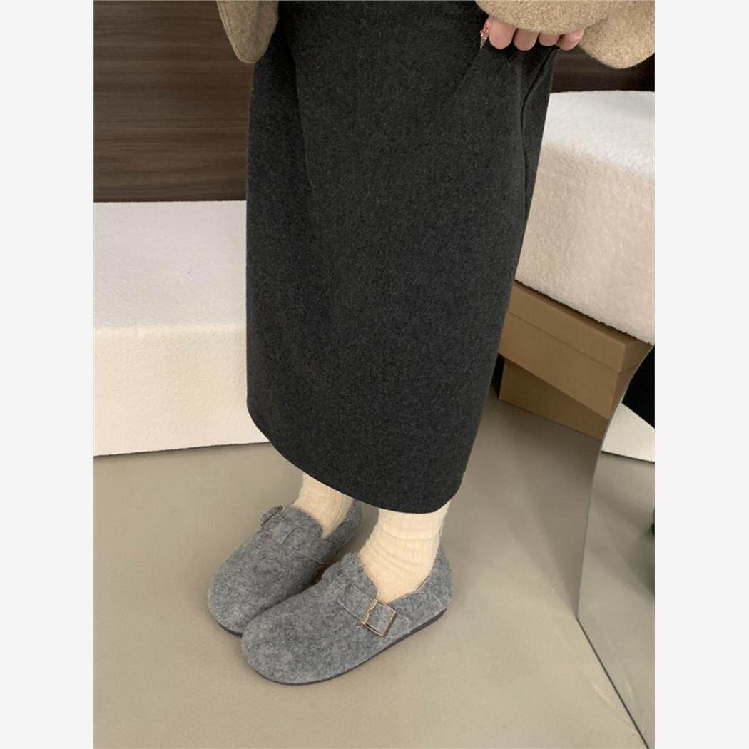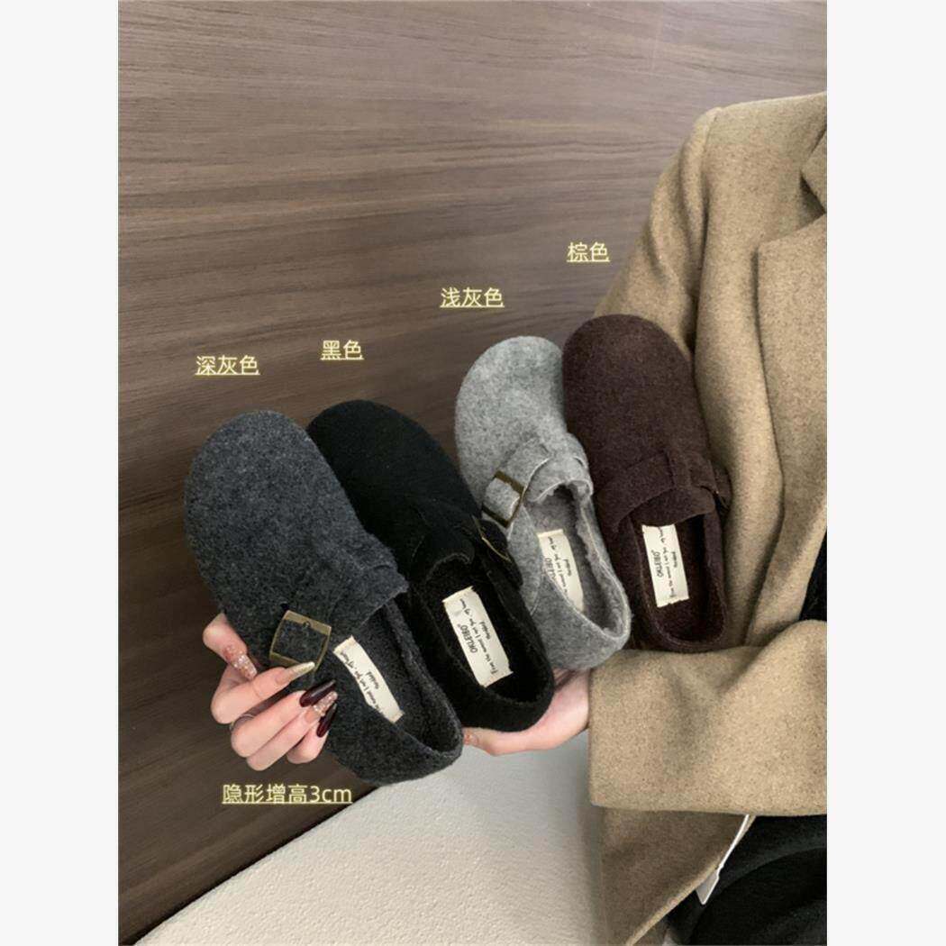 潮牌毛呢灰色内增高勃肯鞋厚底加绒保暖棉鞋毛毛鞋女外穿毛毡单鞋