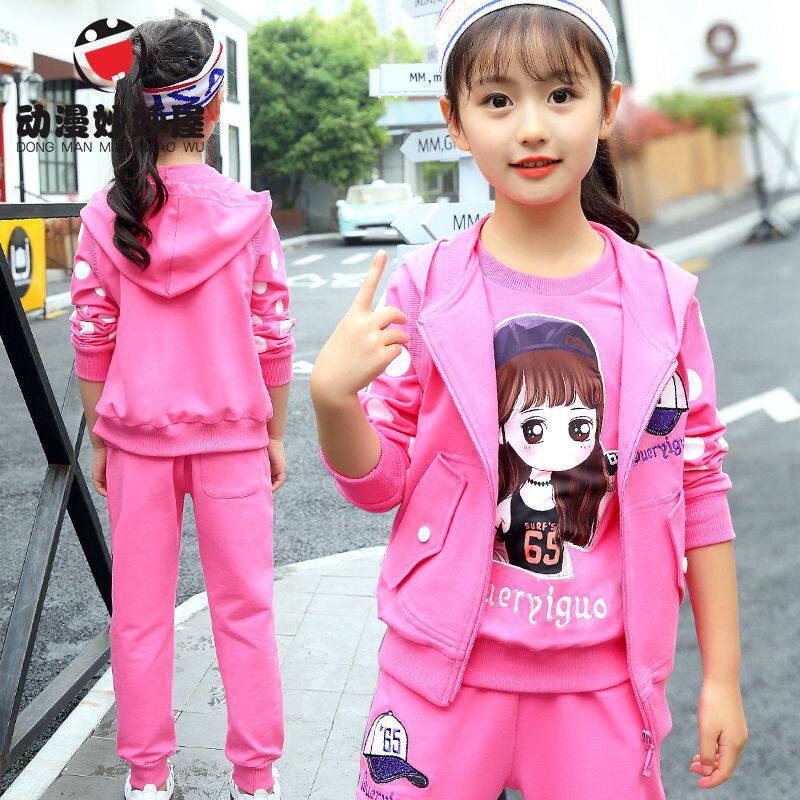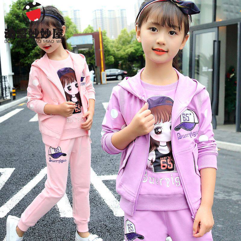 女童春装套装2026新款网红儿童衣服运动洋气三件套韩版时髦