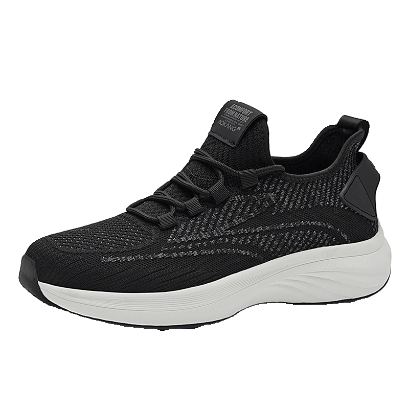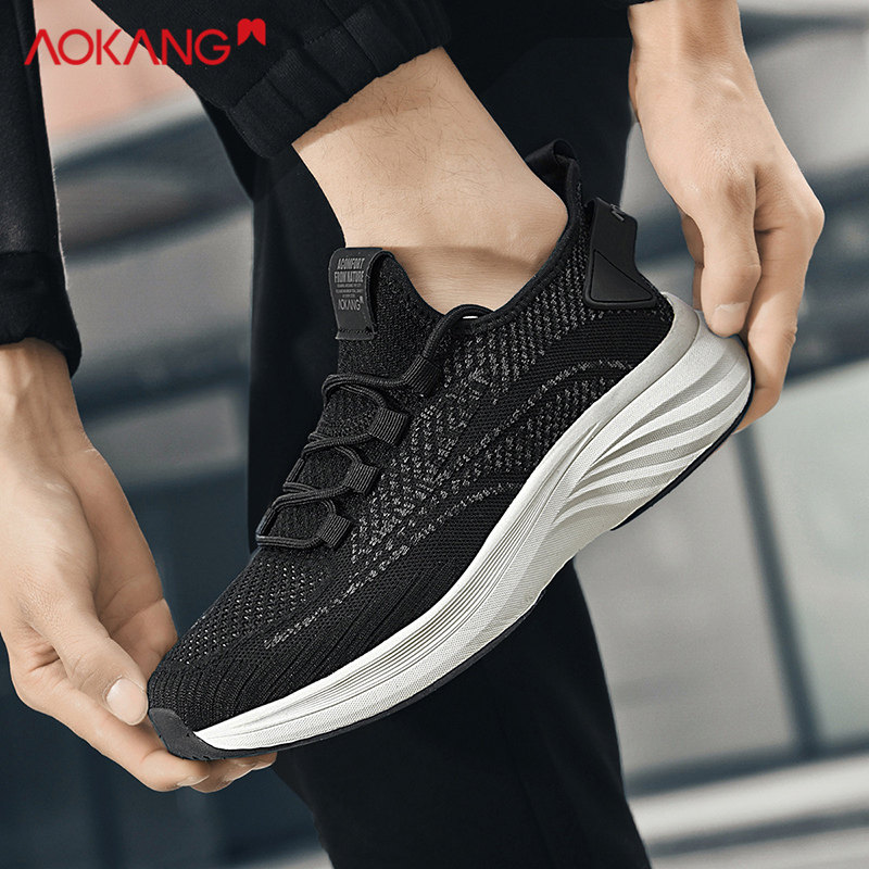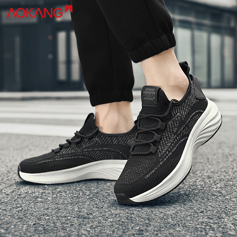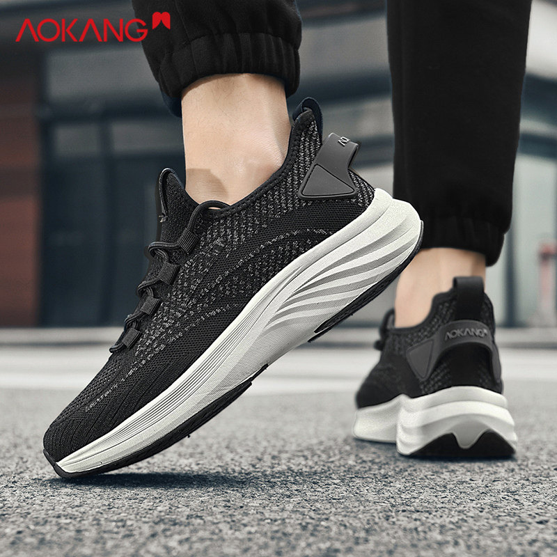 奥康跑步鞋男款冬季网面高级运动鞋轻便软底慢跑鞋黑色系带鞋子男