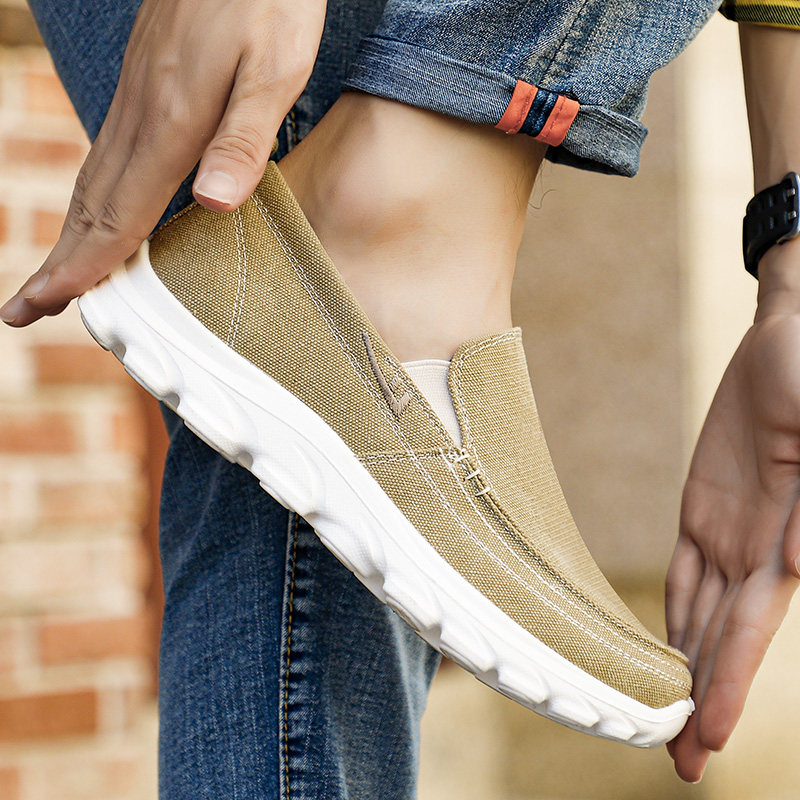 回力运动鞋男一脚蹬帆布鞋卡其色 无鞋带休闲爷爷男鞋防滑跑步鞋
