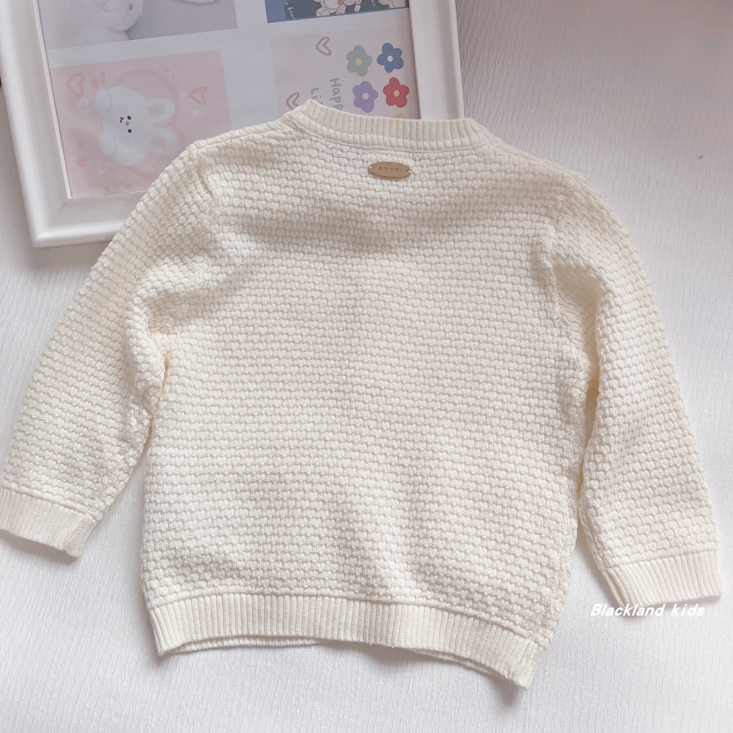 女童纯白色毛衣 春秋款童装 儿童宝宝麻花薄款针织衫开衫外套上衣