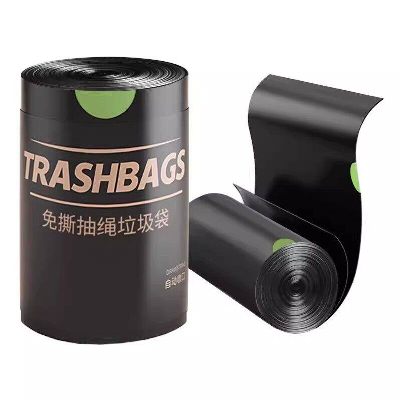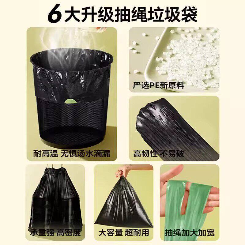 加厚大号厨房手提塑料袋免撕抽绳款办公室黑色垃圾袋自动收口特惠