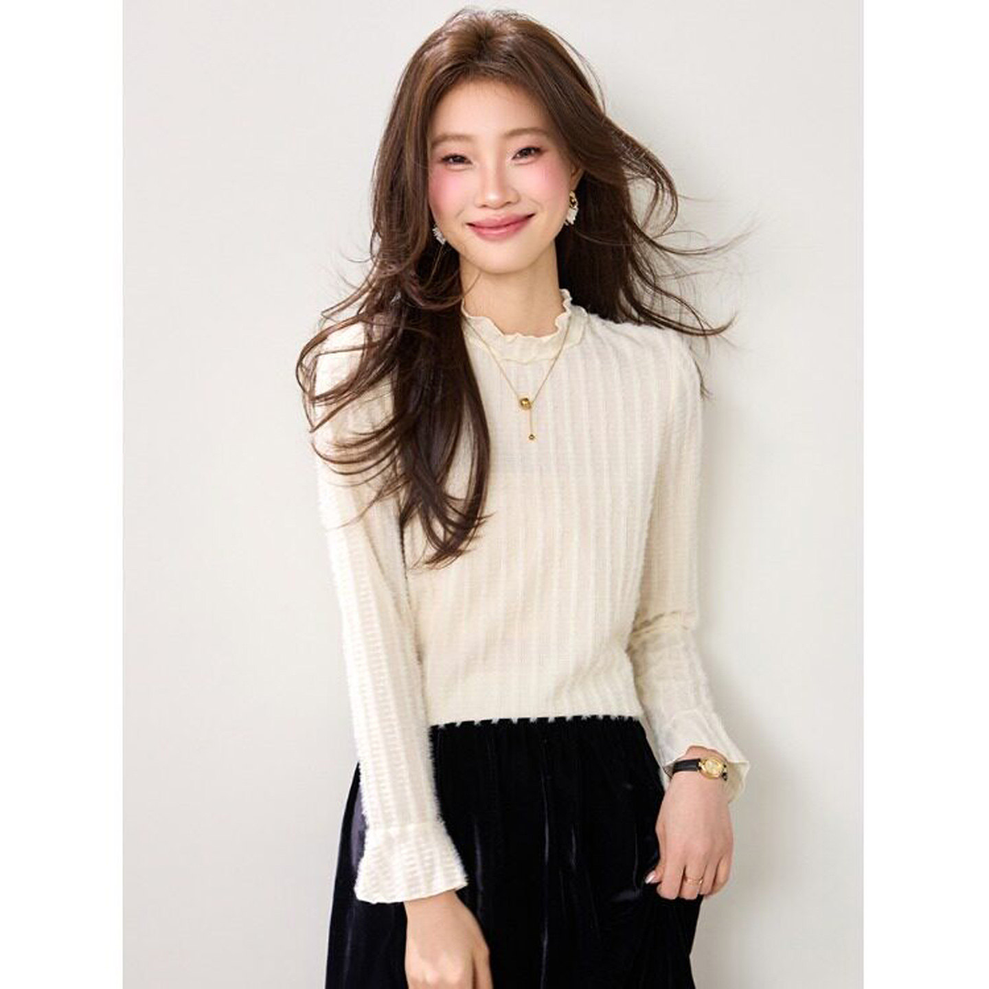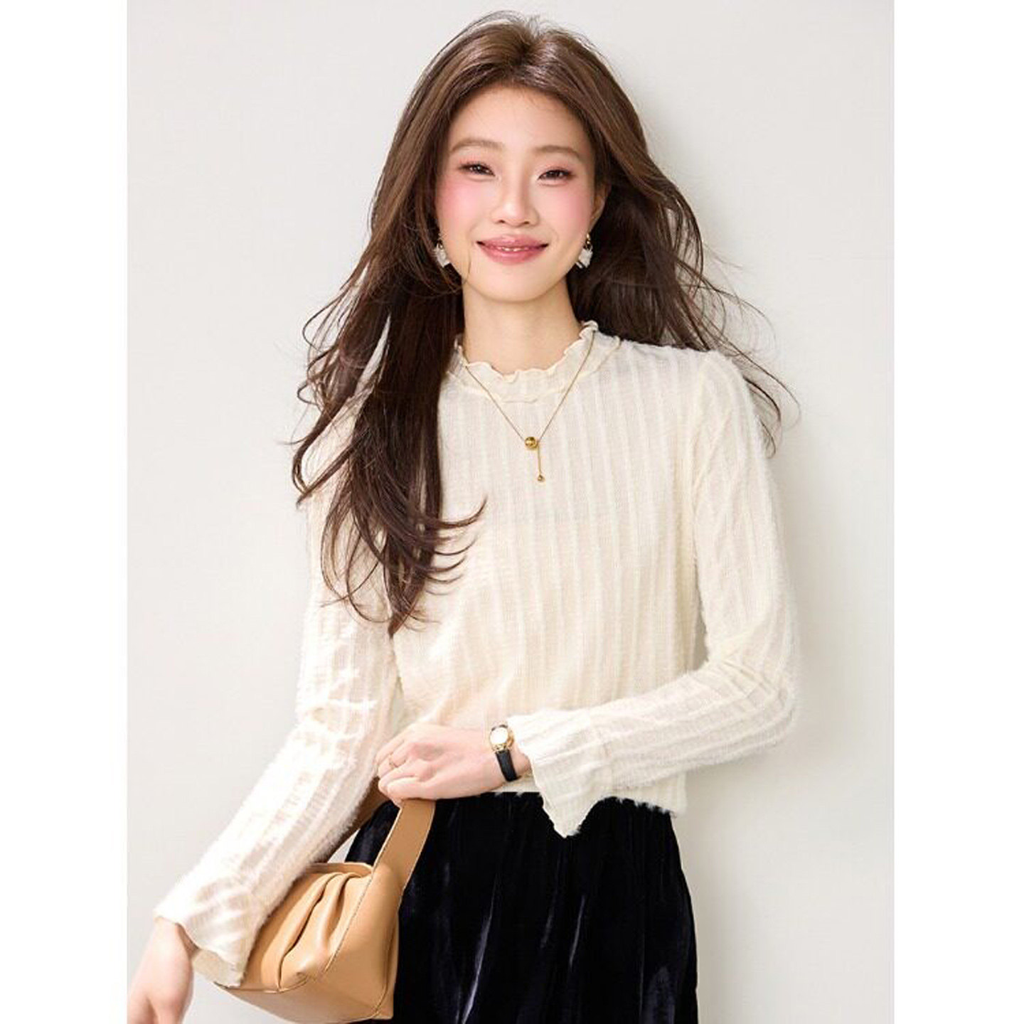t恤春装女款2026年新款木耳边法式小资别致上衣蕾丝喇叭袖打底衫