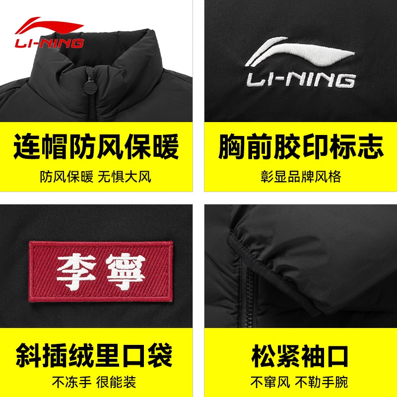 李宁羽绒服男款青少年2025冬季新款加厚保暖袄子上衣立领运动外套