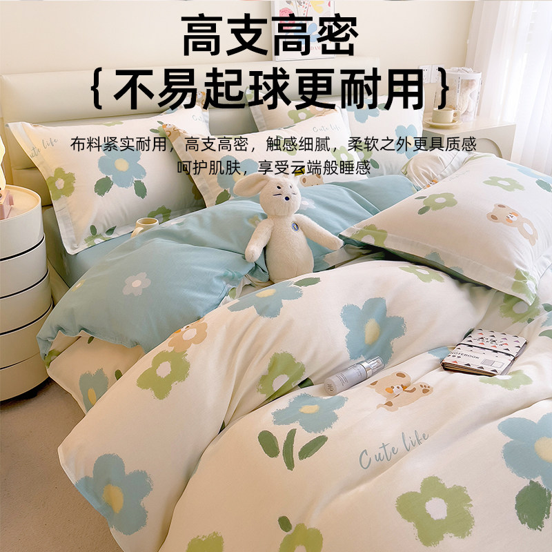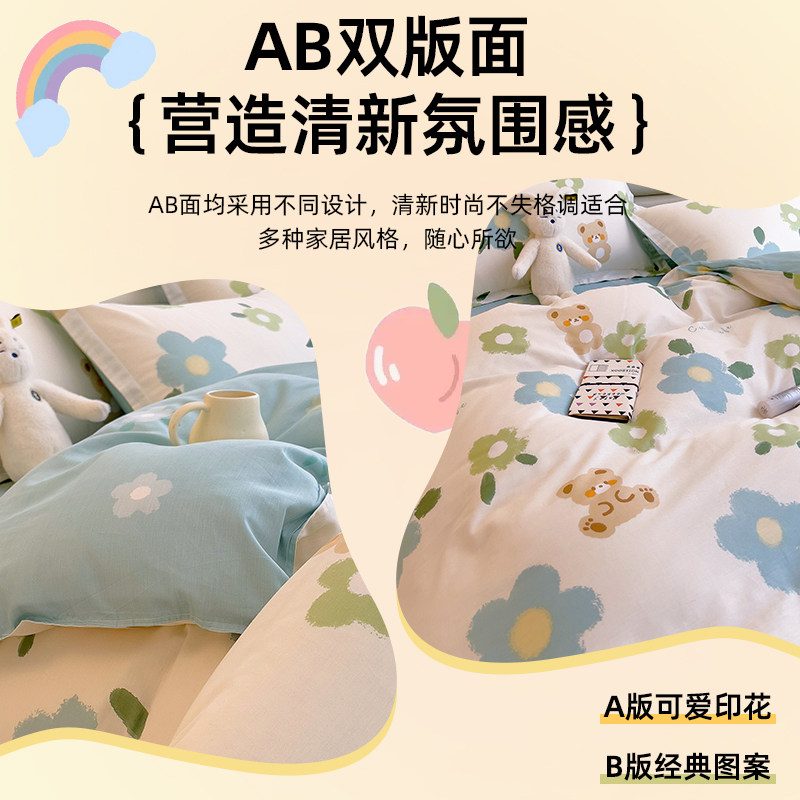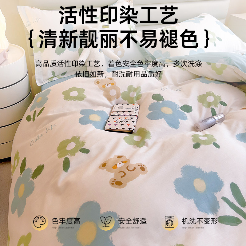 纯棉四件套100全棉被套床单夏季加厚学生宿舍床上用品单人三件套4