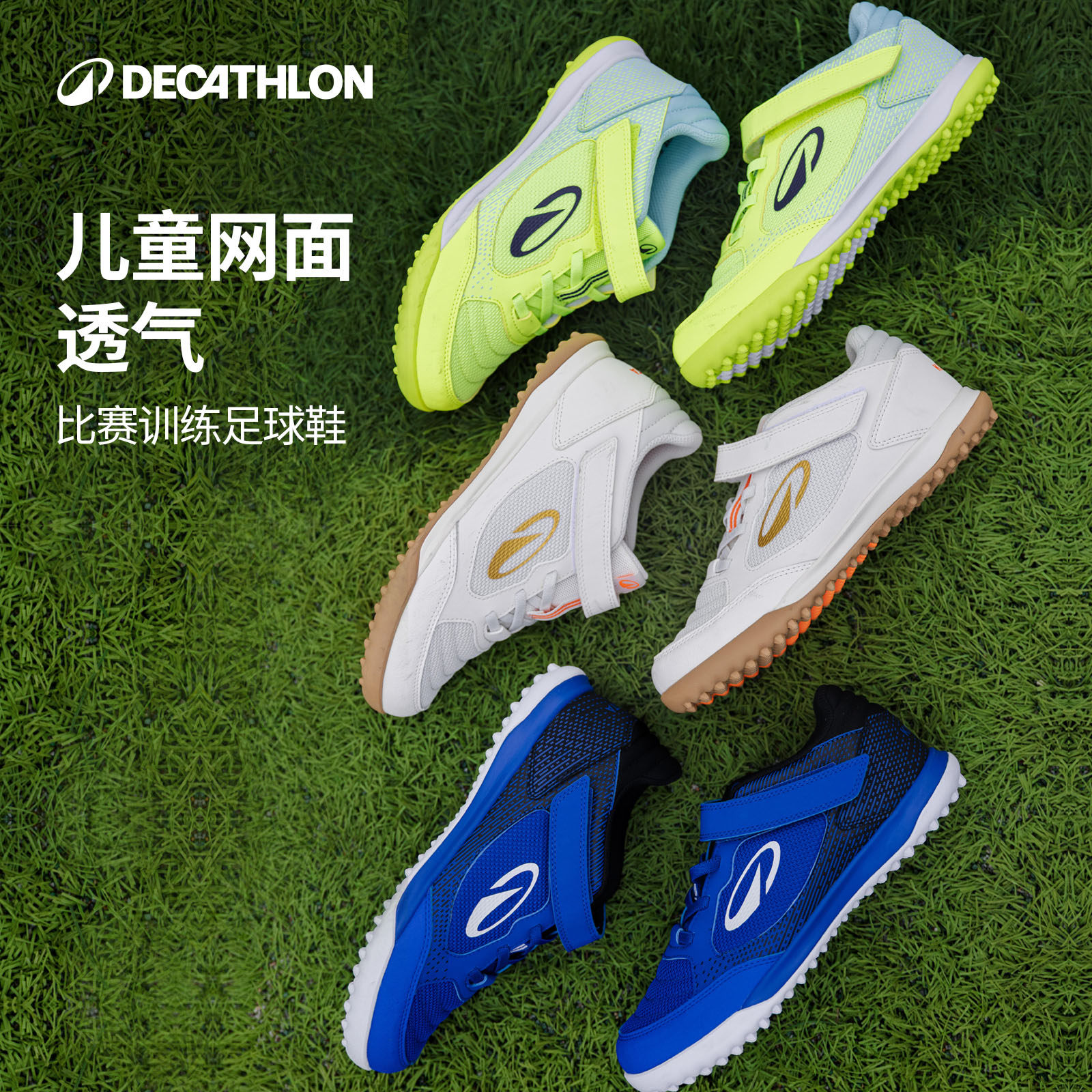 迪卡侬儿童网面透气足球鞋舒适缓震小学生训练碎钉魔术贴正品CST1