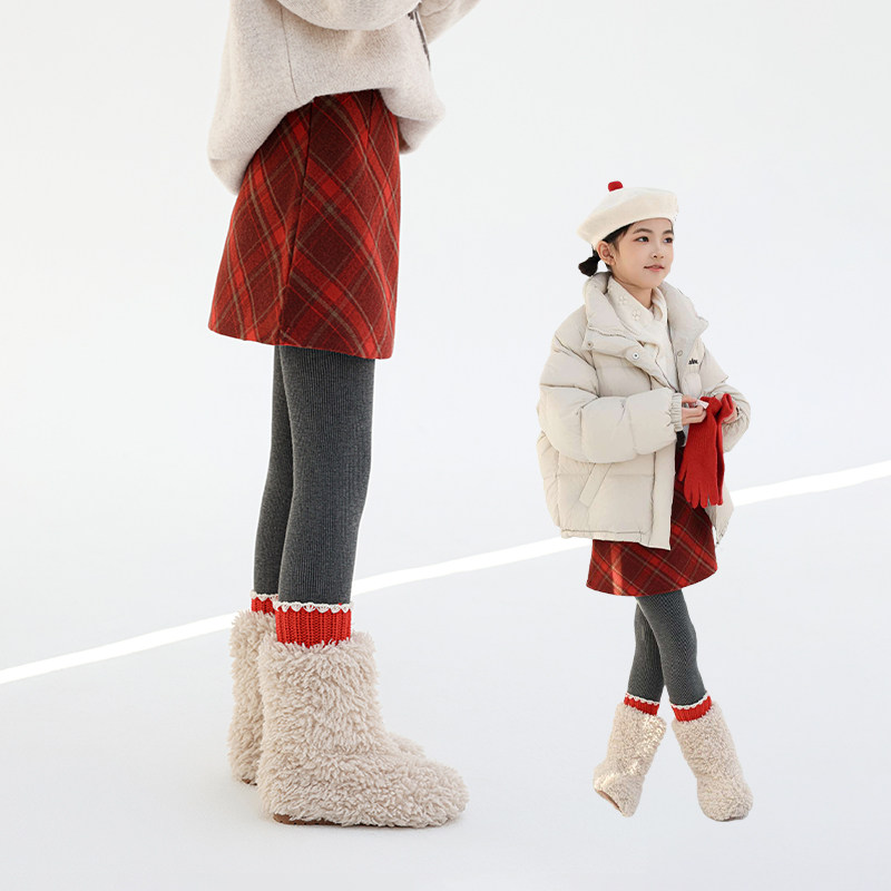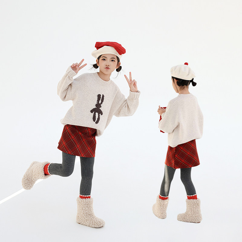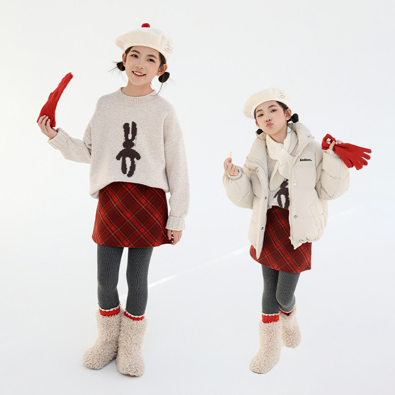 女童半身裙2025冬装新款中大童加厚年款红色裙子儿童格纹毛呢短裙
