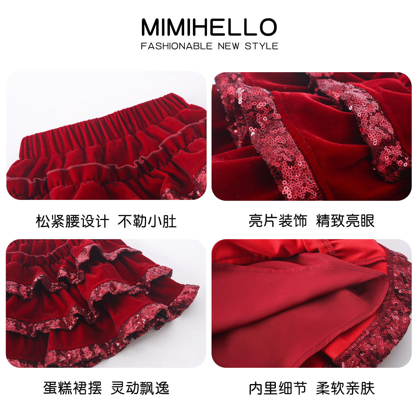 311线报网描述:法式丝绒亮片蛋糕短裙