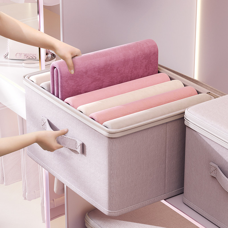 云柔棉衣服收纳箱家用大容量羽绒服整理盒衣柜被子分层带盖储物筐