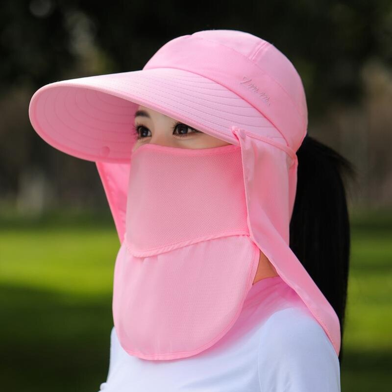 遮阳帽防晒帽子面罩护颈一体女夏遮脸采茶防尘户外骑车大檐太阳帽