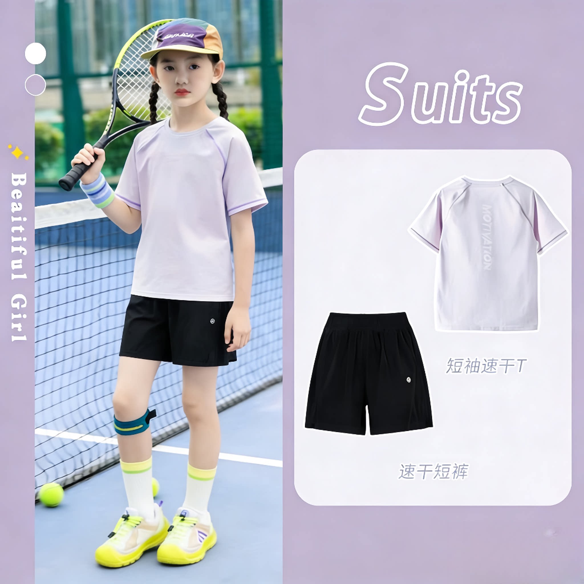 女童运动速干套装夏季2026新款儿童羽毛球训练服冰丝薄款短袖短裤