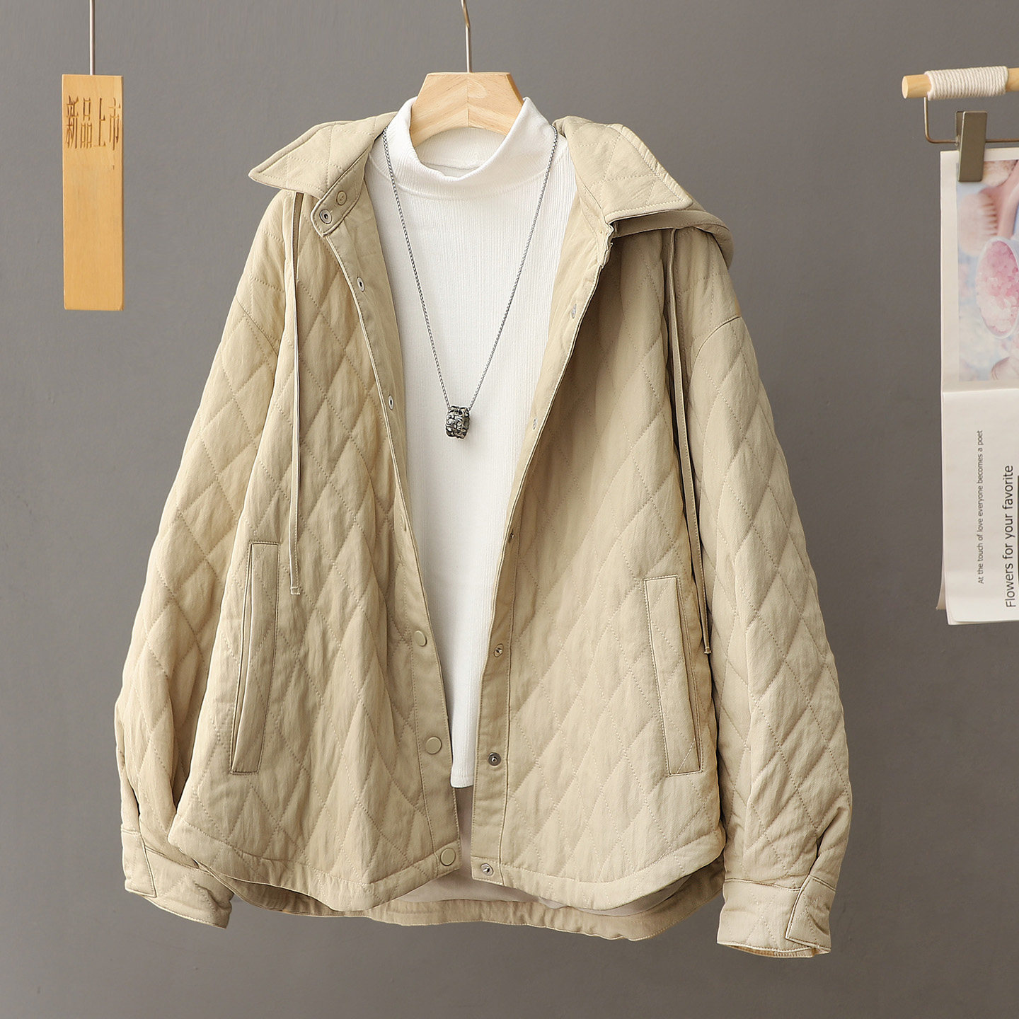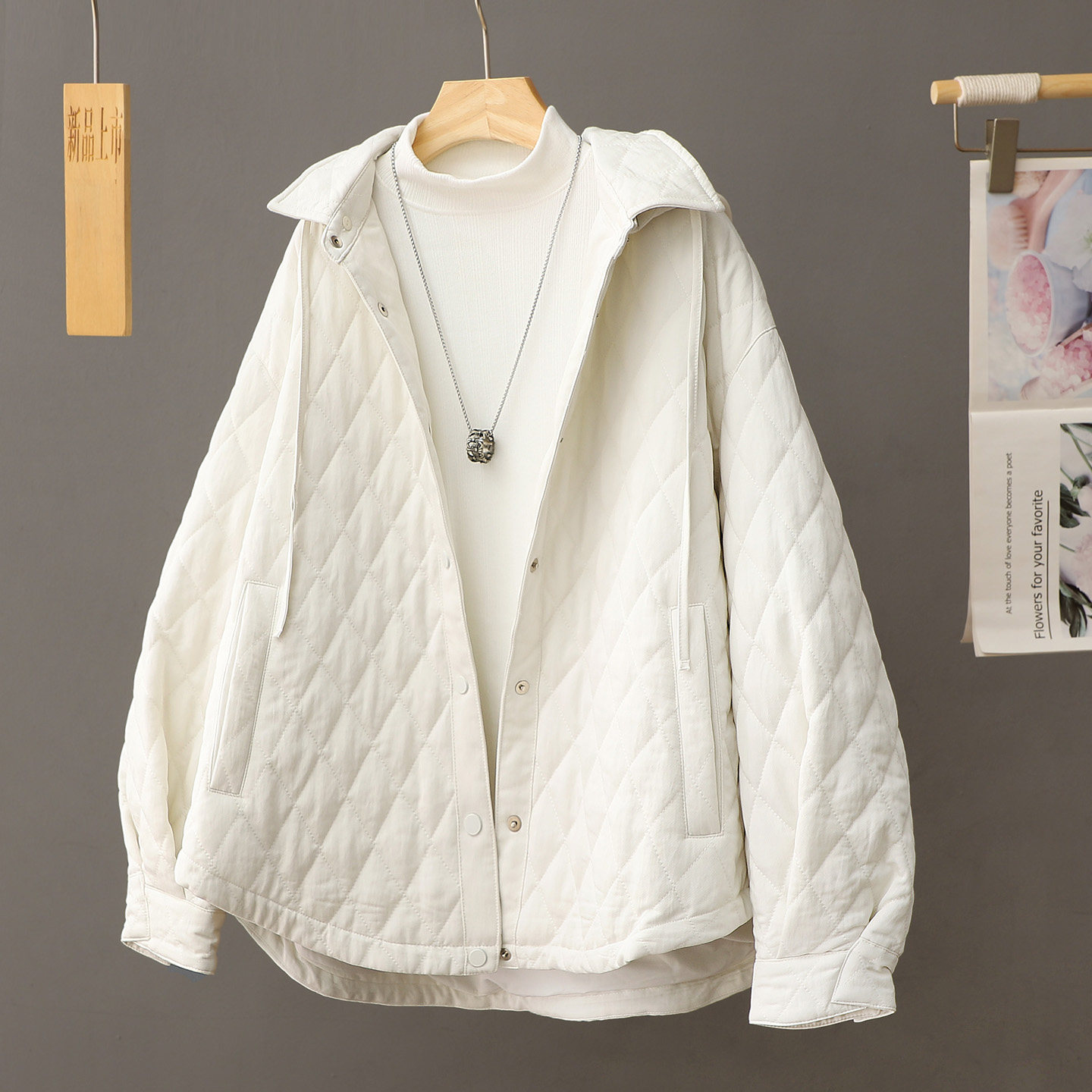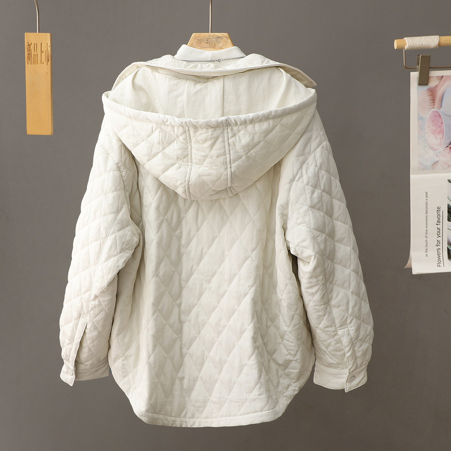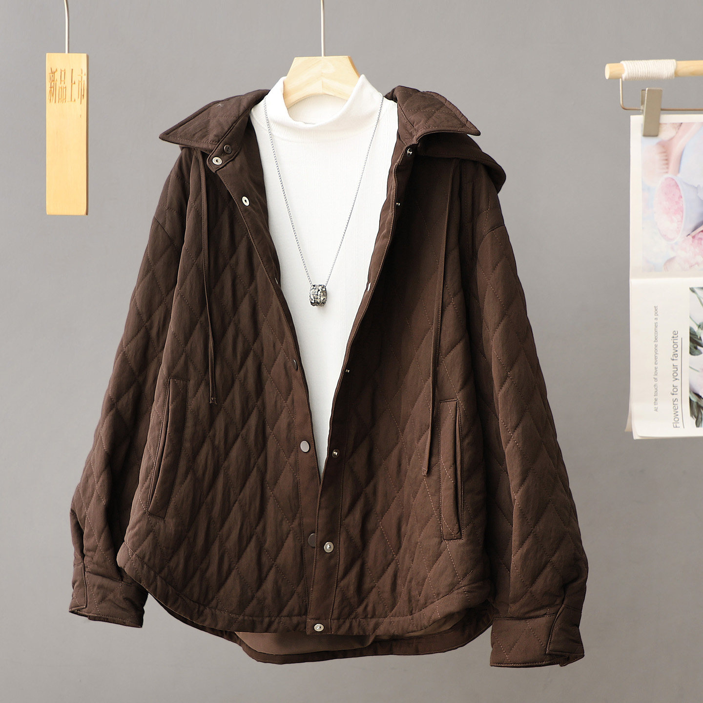 中长款连帽夹棉棉衣女款爆款2025新款菱格宽松休闲轻薄棉服厚外套