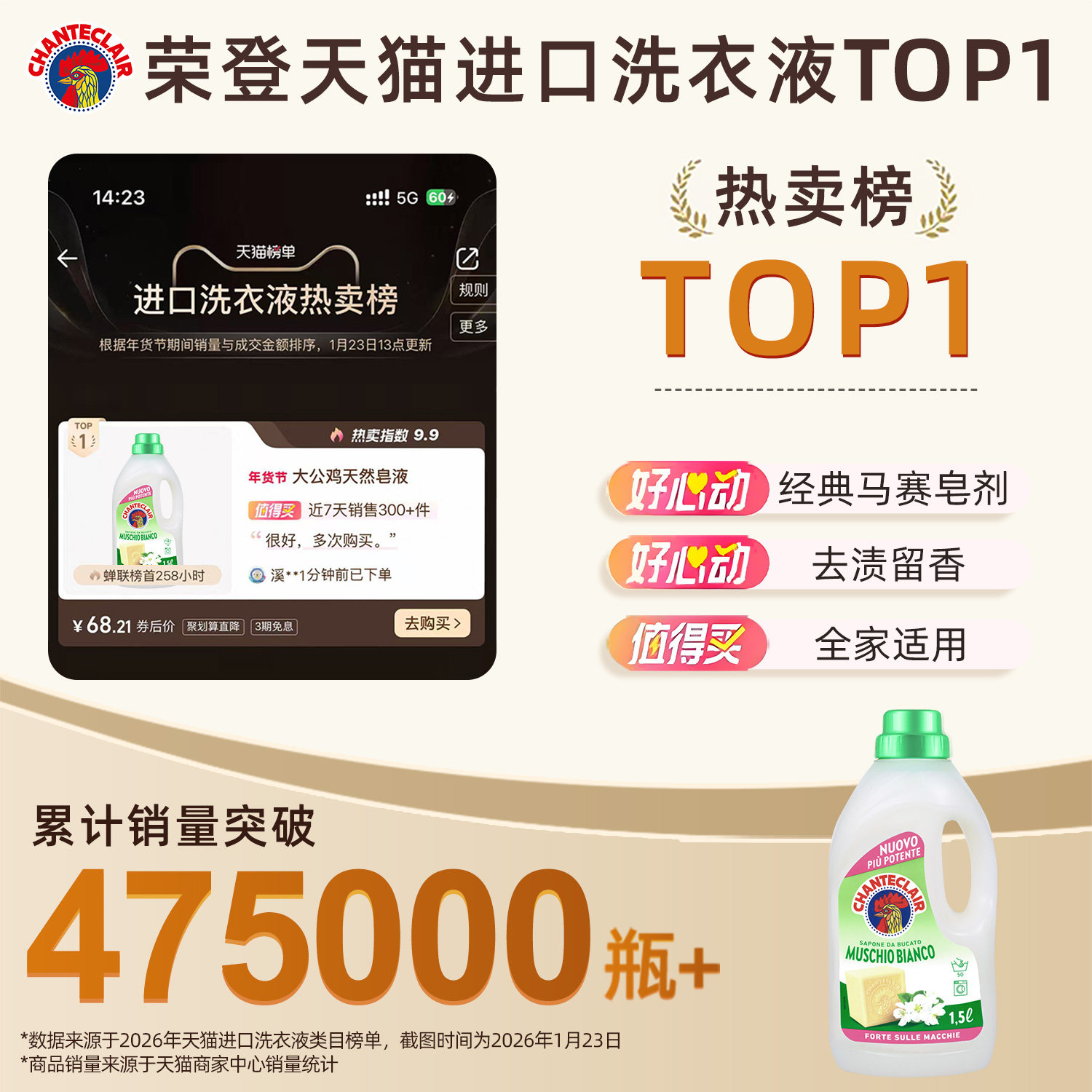 进口大公鸡洗衣液家用天然皂液持久留香72小时香水官方旗舰店正品