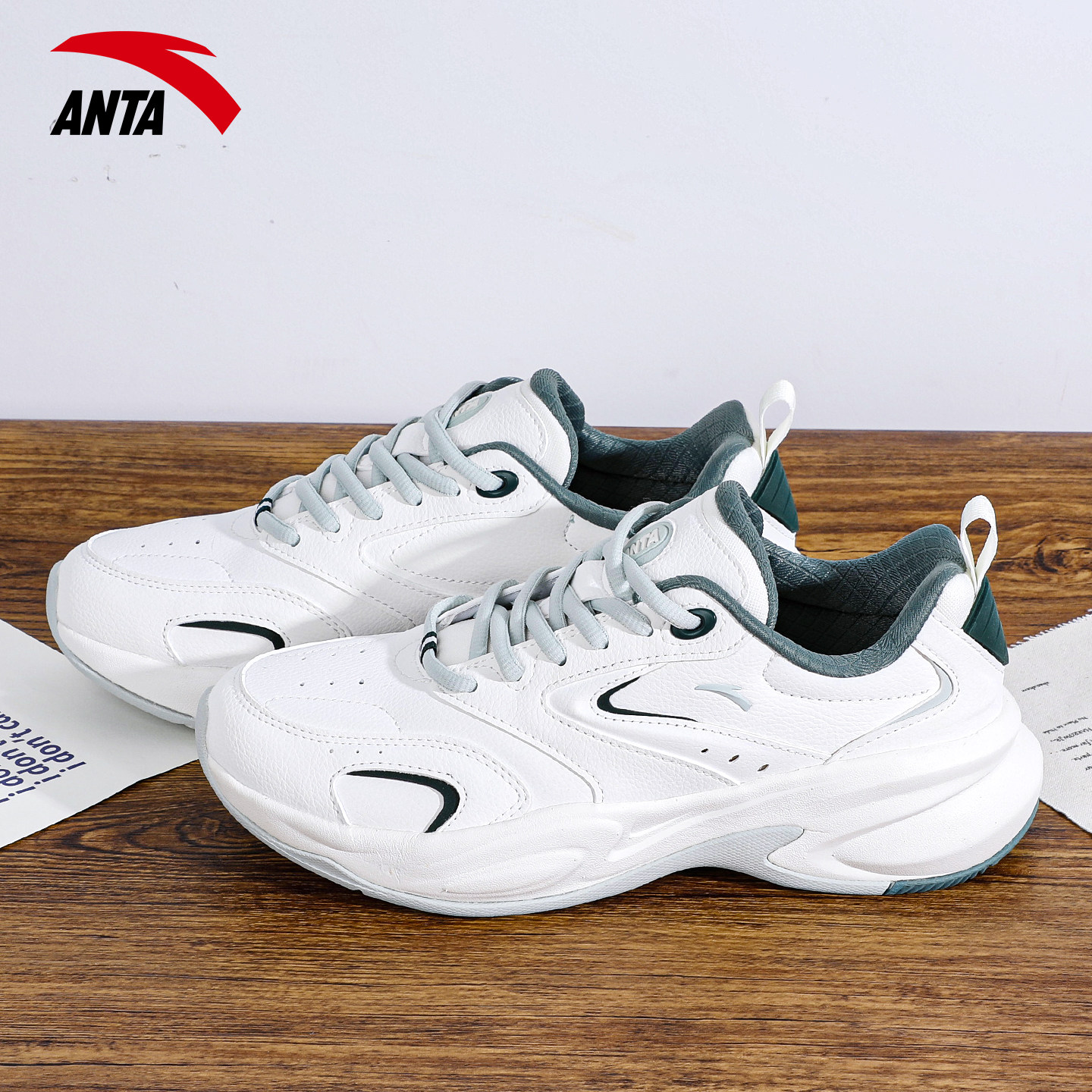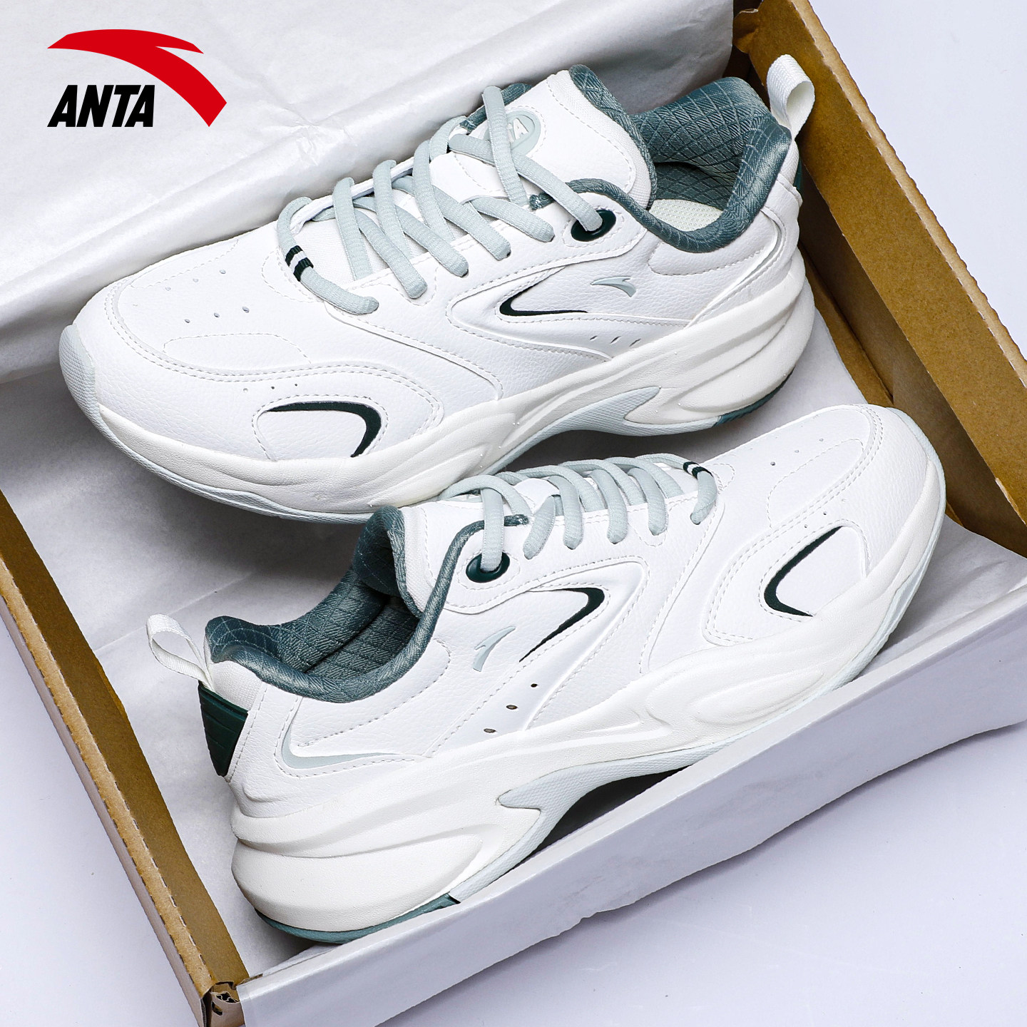 安踏女鞋复古老爹鞋女款春季2026新款网球风白色增高革面运动鞋女