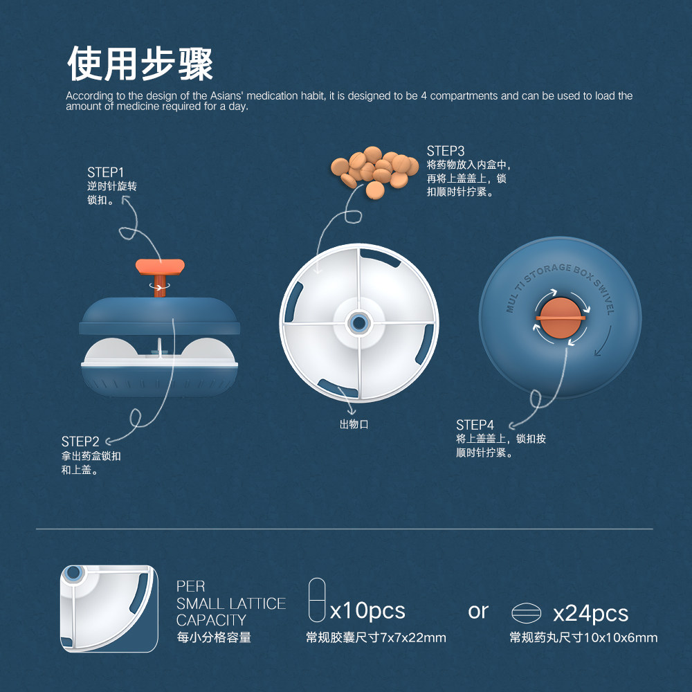 小药盒一周分装四格随身迷你可爱小号便携式旋转药物药品收纳盒