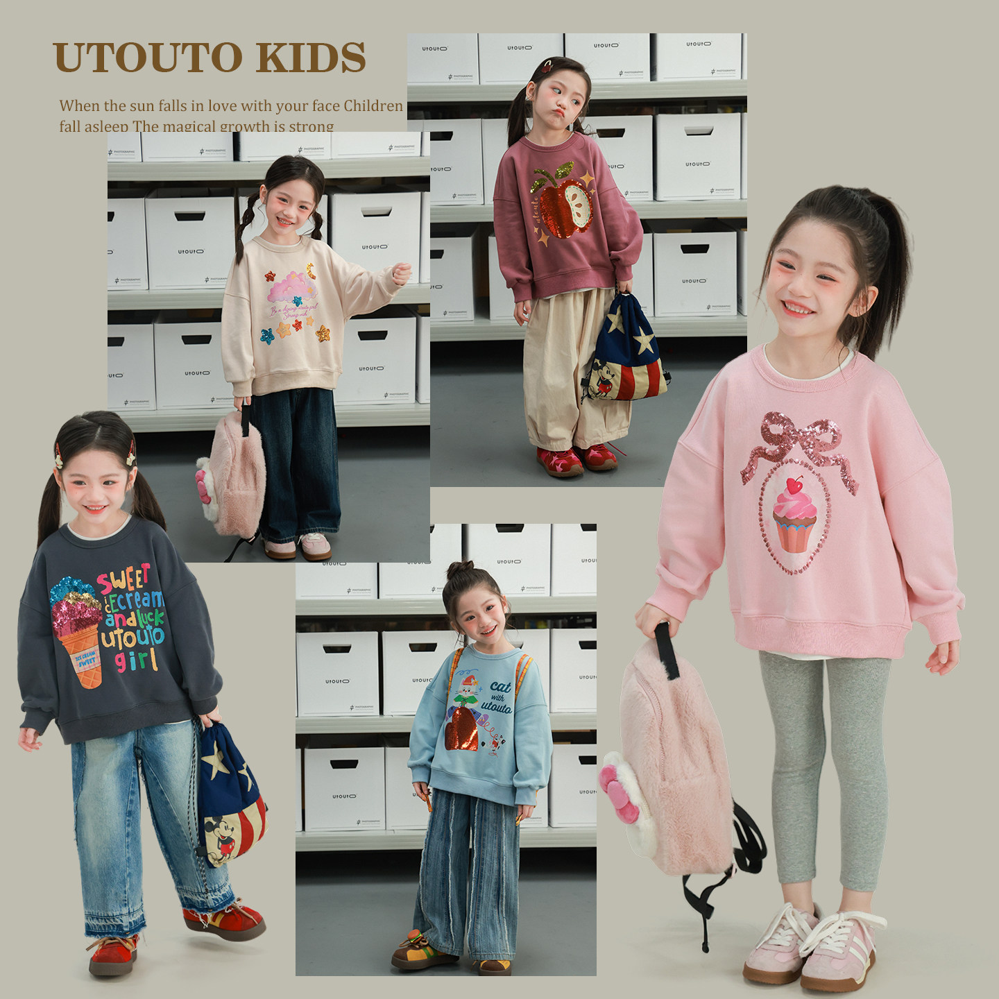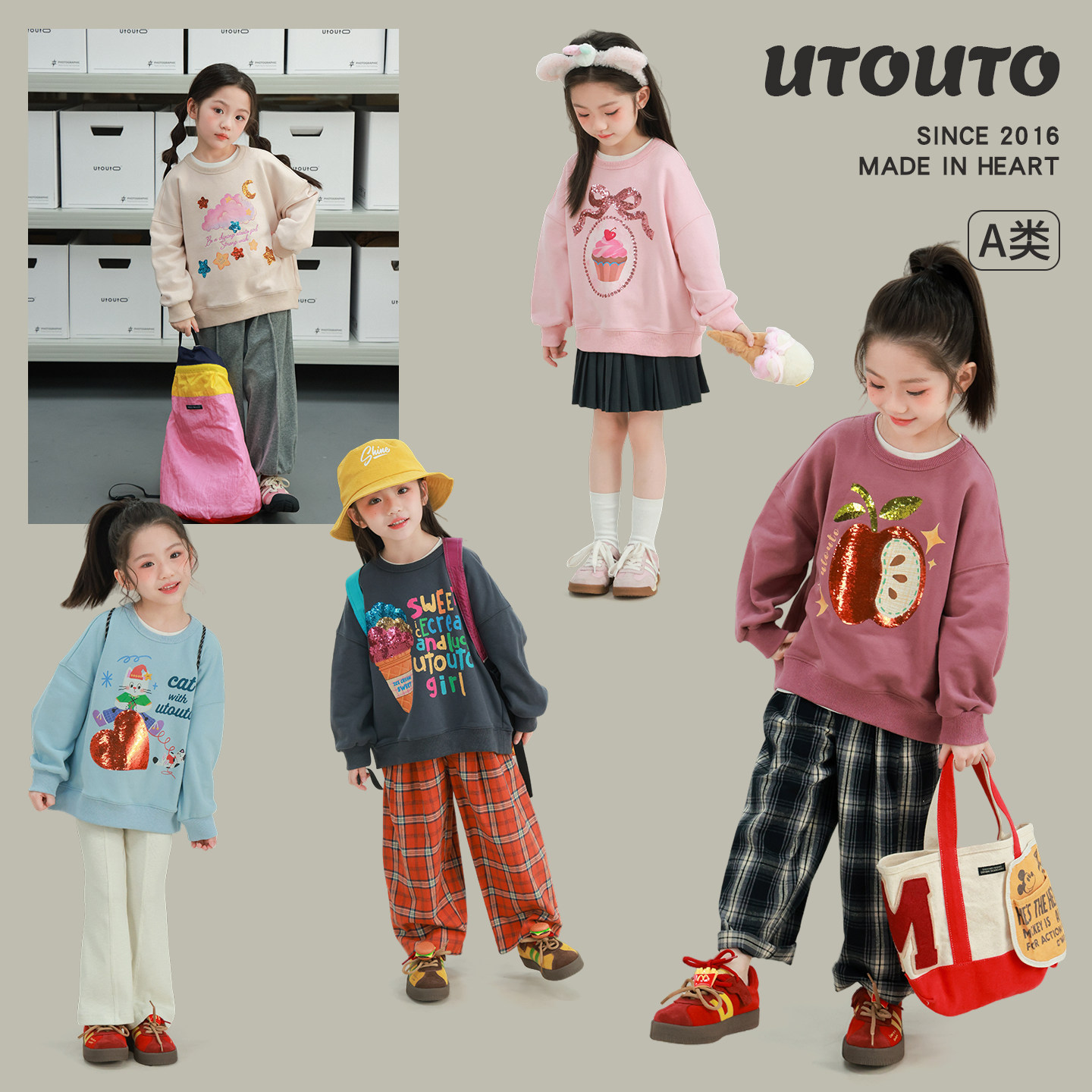 大耳象女童亮片印花卫衣2026春季新款宝儿圆领休闲百搭长袖上衣