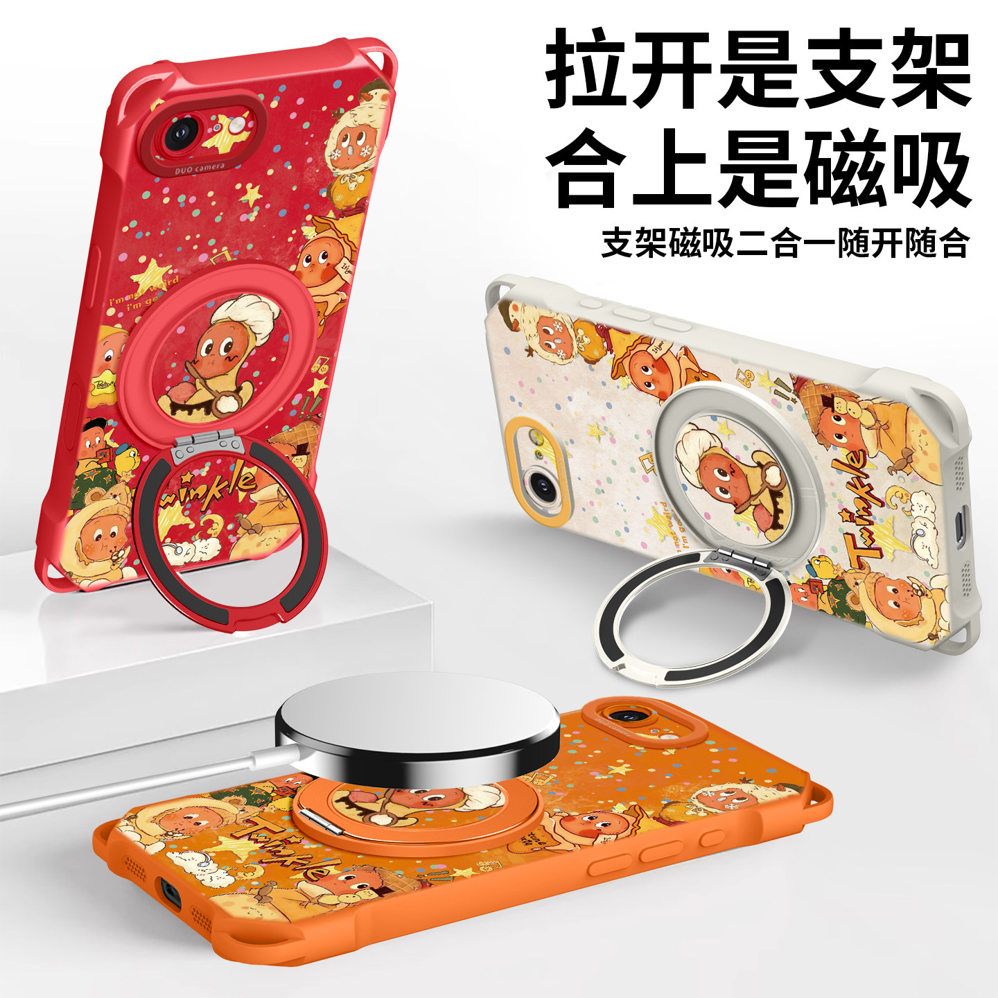 适用苹果17e手机壳iPhone17E新款带挂绳16e防摔IPHONE背带保护套ip磁吸支架iPhone16E手提星星人2026女款斜挎
