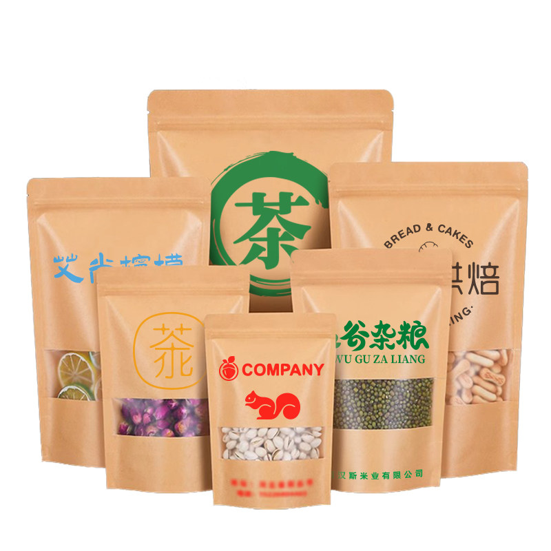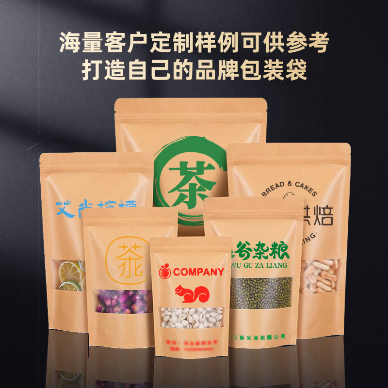 牛皮纸开窗袋定制印字logo茶叶自封袋瓜子干果封口密封袋免费设计