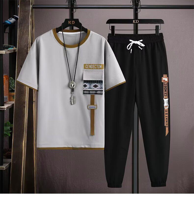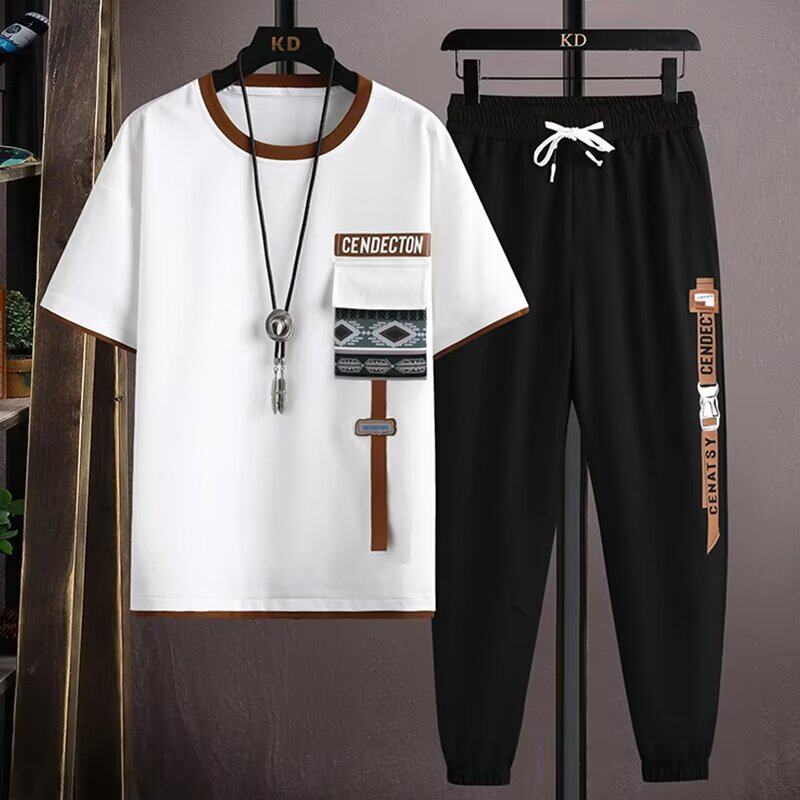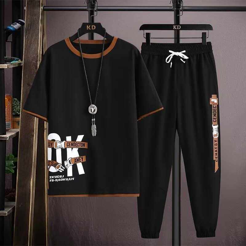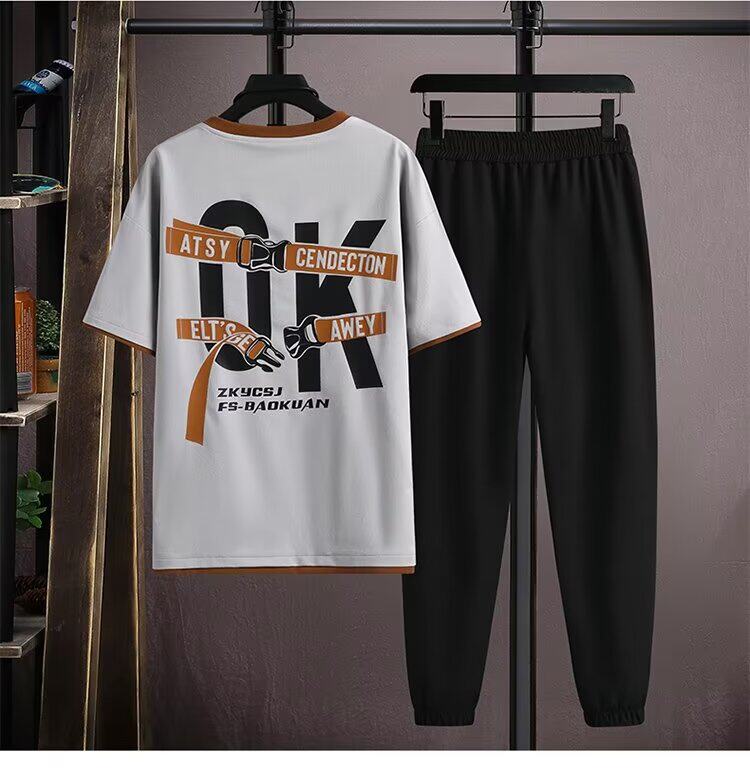 青少年短袖t恤男夏季加肥加大宽松潮牌2024新款运动半袖长裤套装