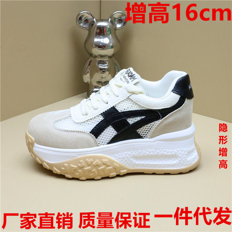 夏季2026新款网面休闲德训鞋女厚底增高12cm小个子百搭10厘米潮鞋