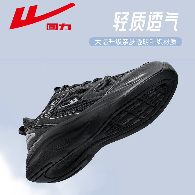 回力男鞋透气运动鞋软底舒适黑色工作鞋子男款跑步鞋网面休闲鞋