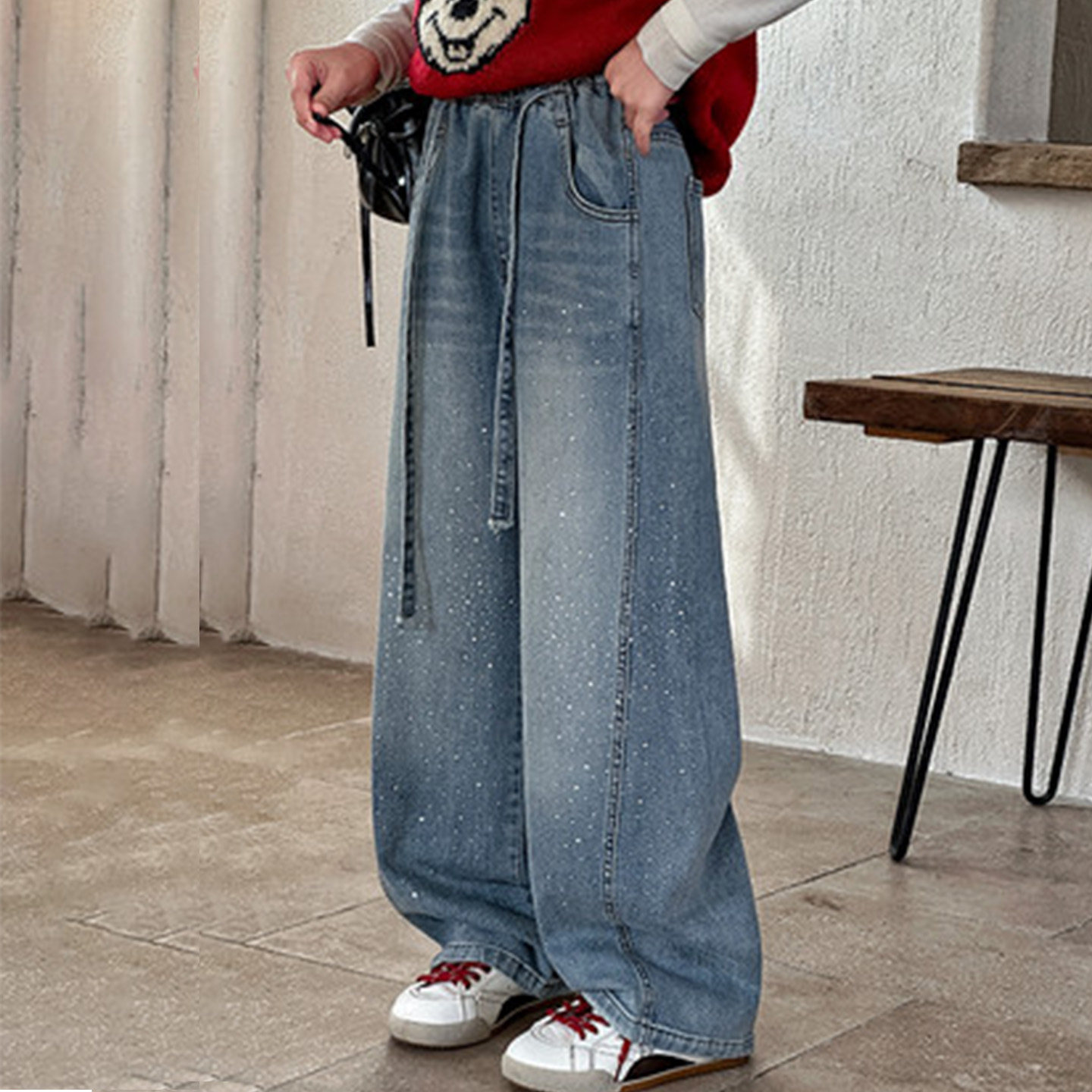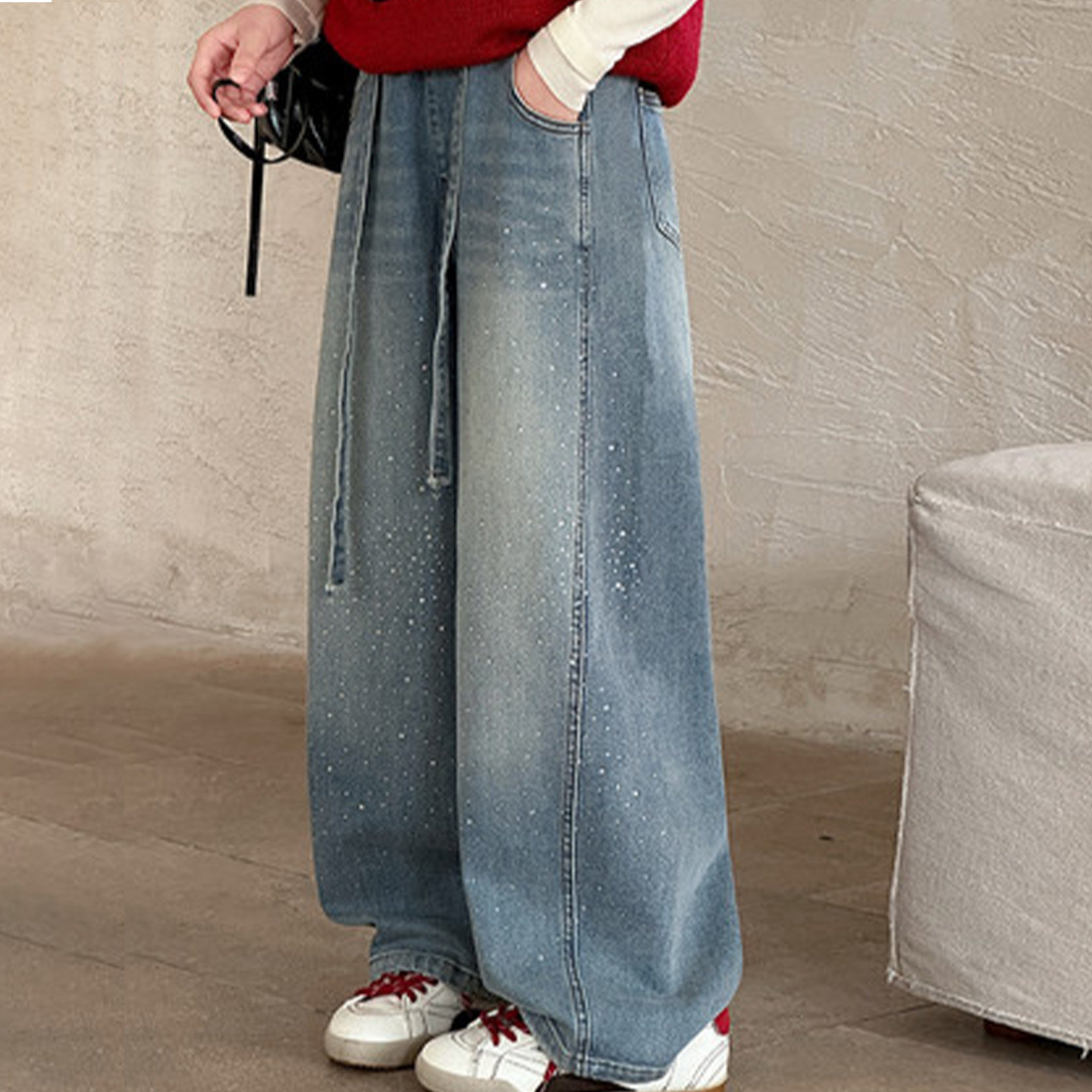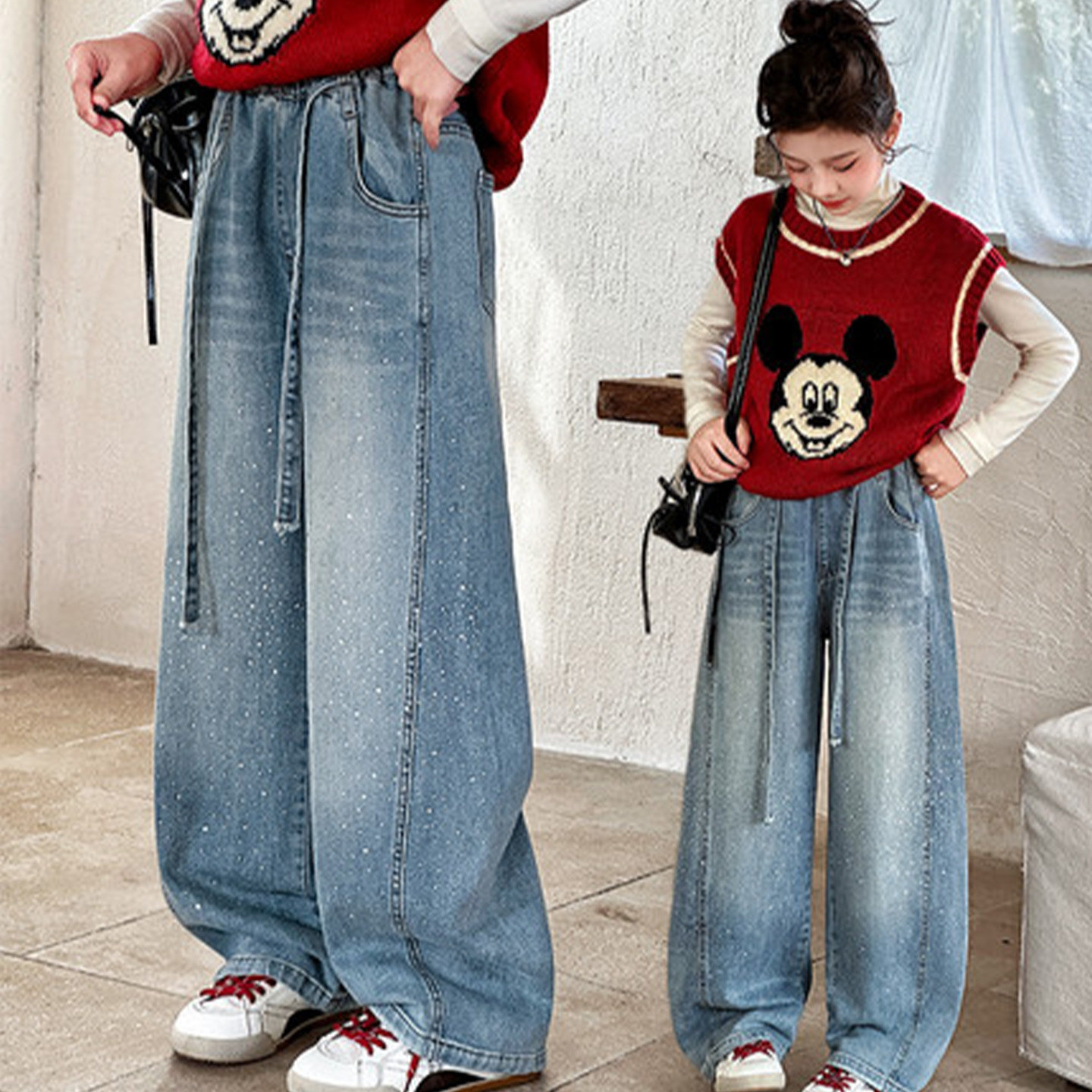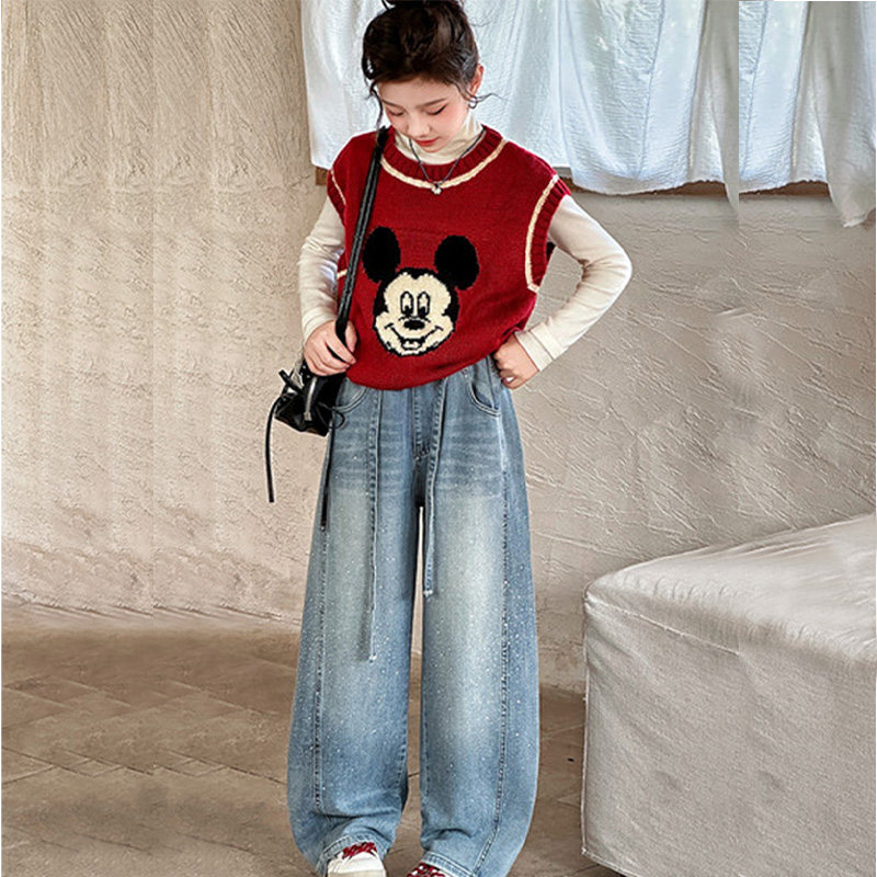 女童牛仔裤春装2026新款春季直筒阔腿裤大童宽松休闲弯刀裤子春秋