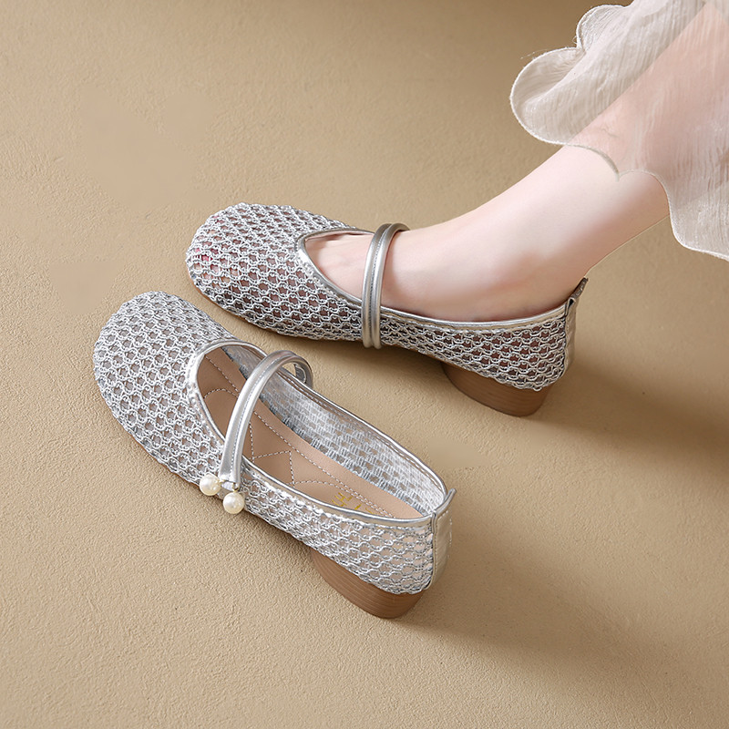 玛丽珍豆豆鞋女2026新款夏季透气配裙子中跟不累脚晚晚鞋软底单鞋
