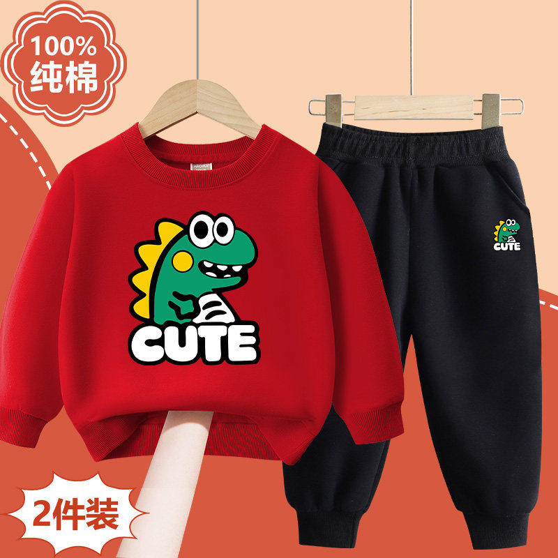 全棉男童套装春装2026新款帅气时髦恐龙儿童宝宝春季薄款运动两件