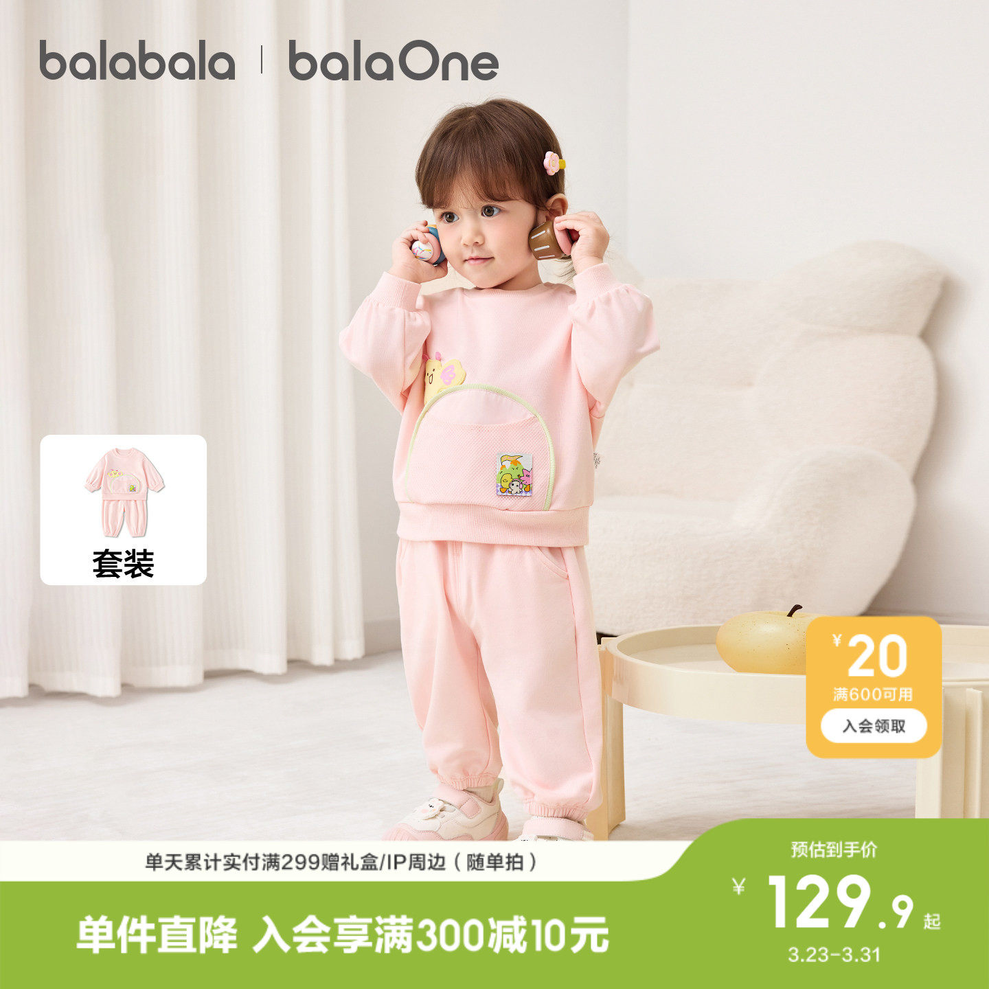 巴拉巴拉童装儿童套装两件套婴儿宝宝男女童2026新款春装萌趣舒适