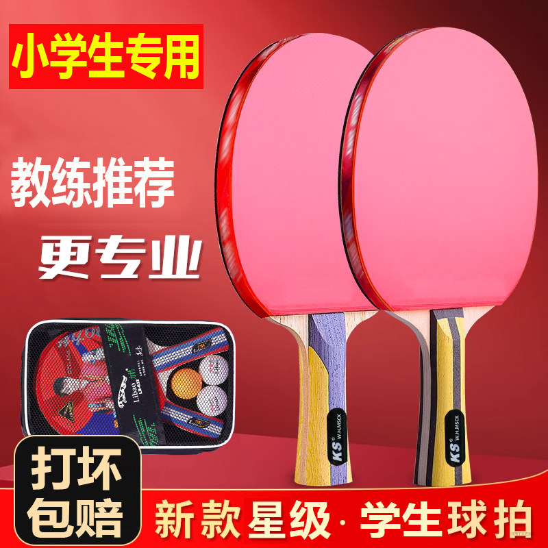 正品乒乓球拍小学生专用儿童初学者横拍长柄比赛训练2只双拍套装