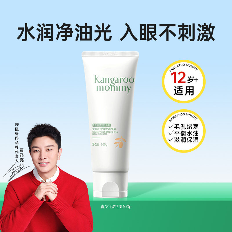 袋鼠妈妈青少年洗面奶男孩青春期女学生控油祛痘保湿氨基酸洁面乳