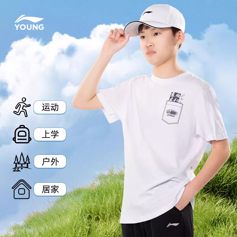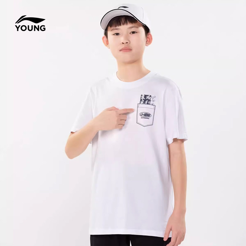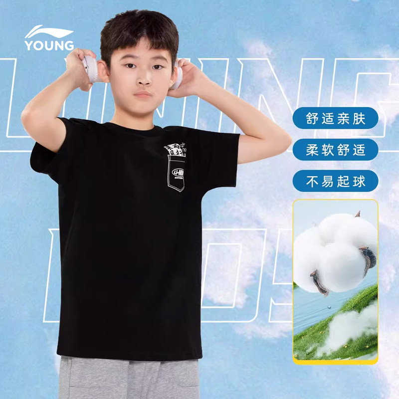 李宁官方正品男童短袖夏季款儿童纯棉T恤中大童上衣男孩半袖衣服