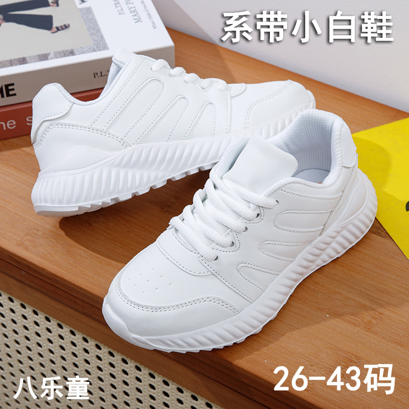 26春新款儿童白鞋男女童白色运动鞋小学生青少年中大童系带跑步鞋