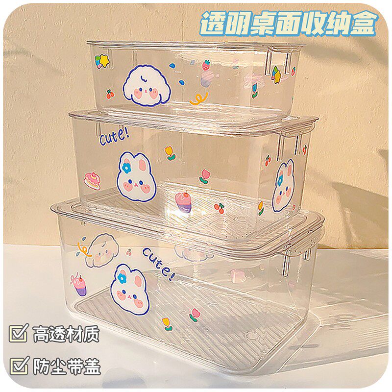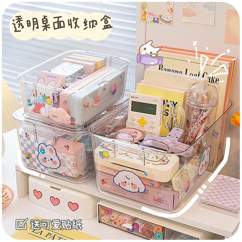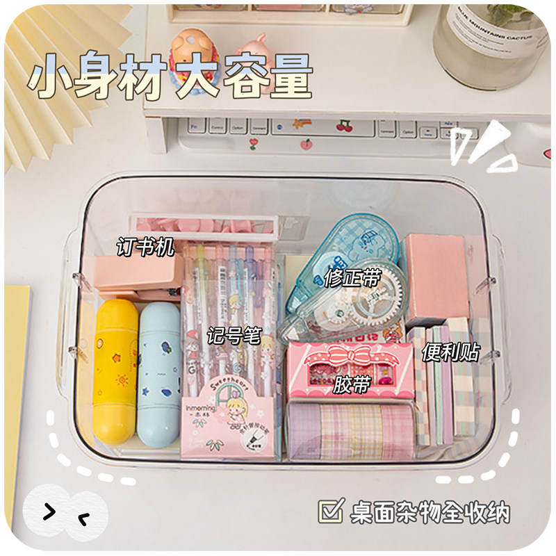 透明收纳盒桌面亚克力带盖文具整理口罩箱化妆品置物架储物小盒子