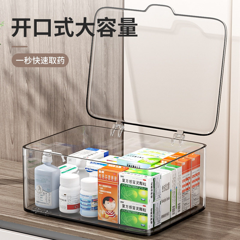 透明亚克力收纳盒带盖防尘桌面收纳箱药品收纳大容量化妆品收纳筐