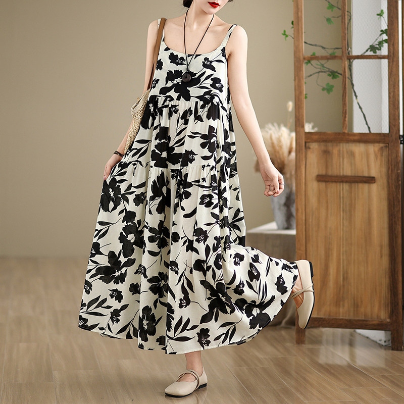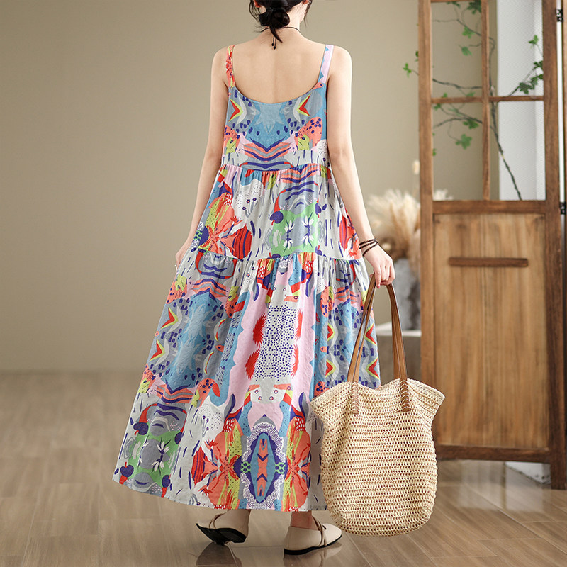 大码胖mm波西米亚印花吊带长裙女夏季海边度假风沙滩裙大摆连衣裙
