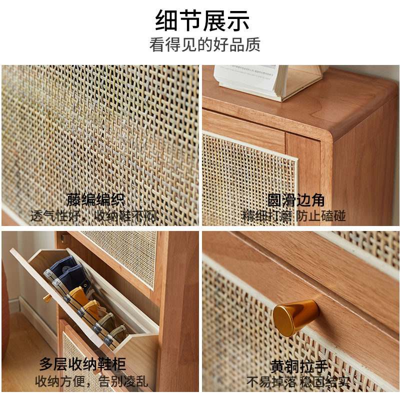 日式藤编鞋柜实木家用门口极窄鞋架18cm收纳一体透气玄关柜省空间