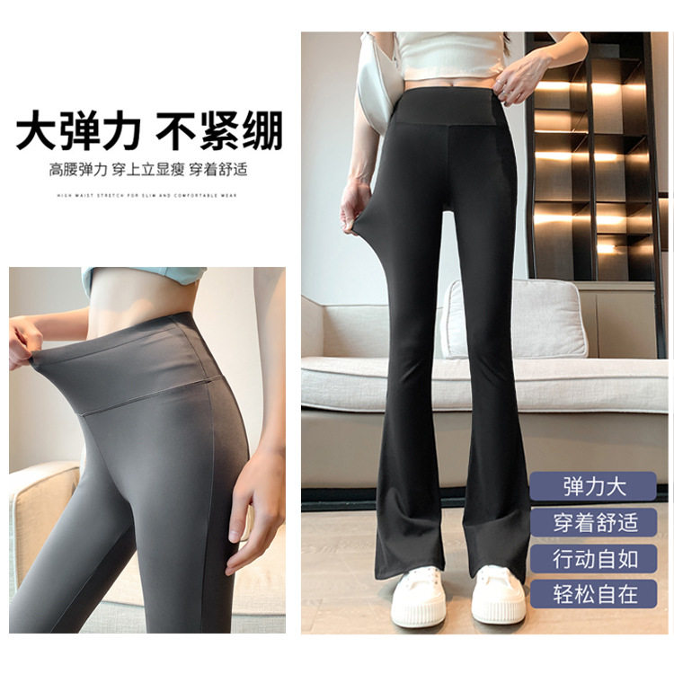 瑜伽外穿加长微喇裤女款2026春装新款大码胖mm200斤喇叭鲨鱼裤子