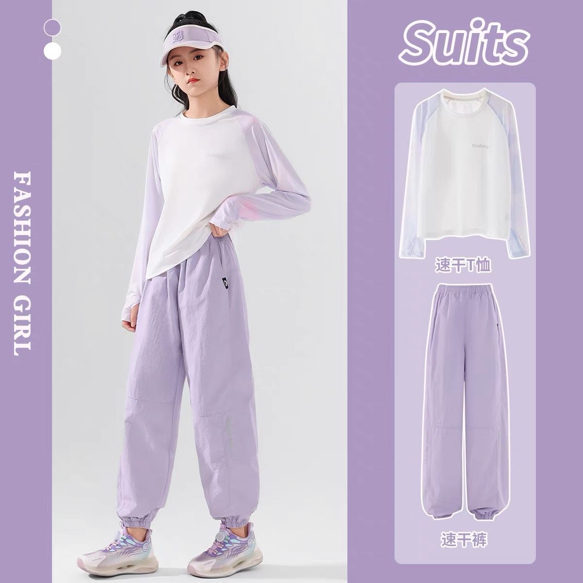 女童速干衣套装2026新款儿童春秋长袖跑步女孩运动女大童羽毛球服