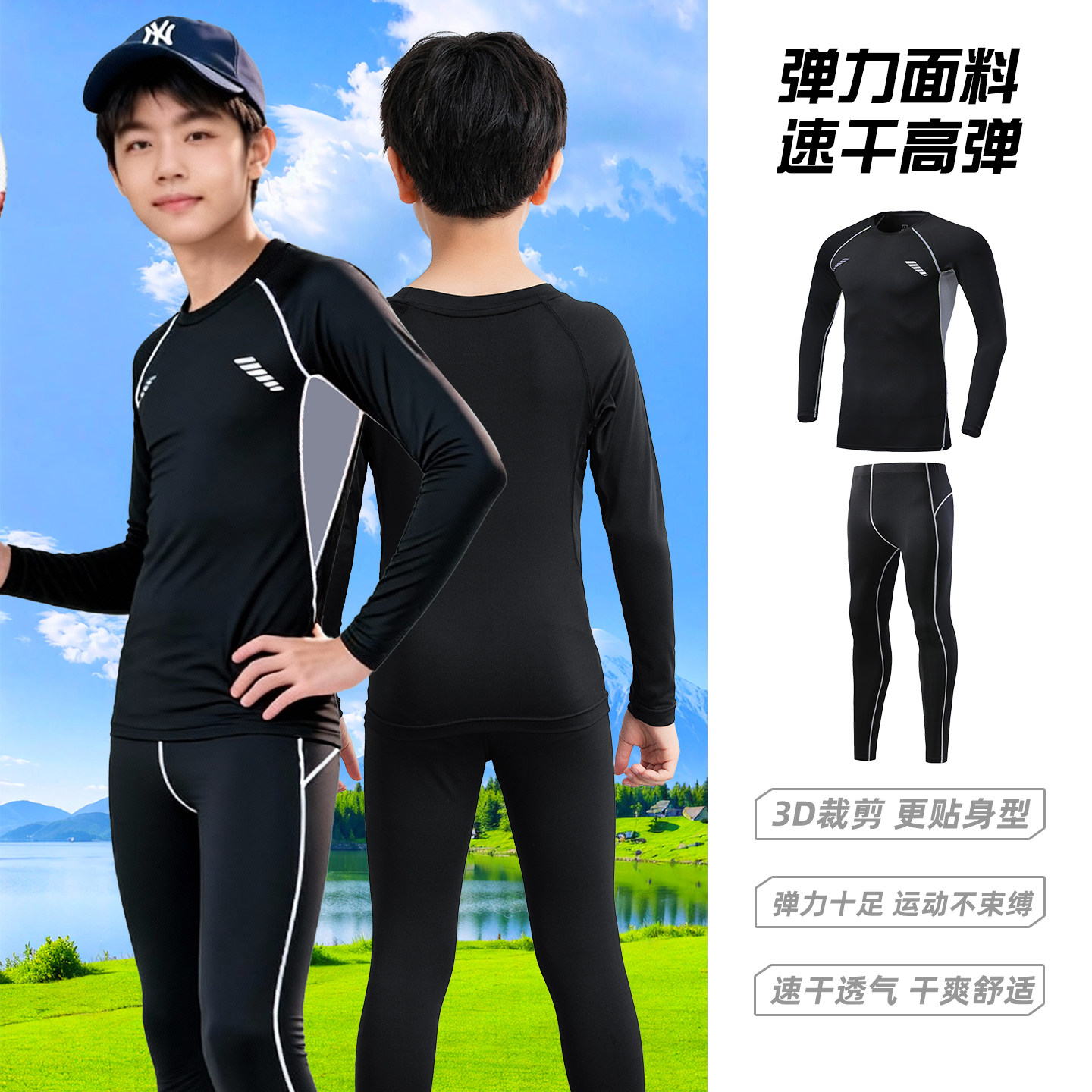 男童篮球紧身衣训练服儿童速干衣内搭打底青少年健身运动套装春秋