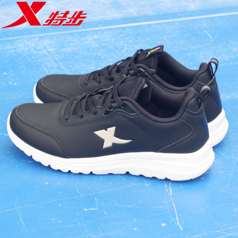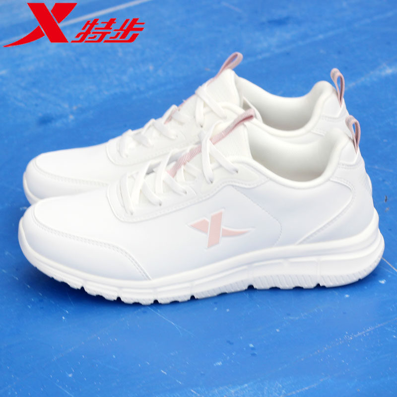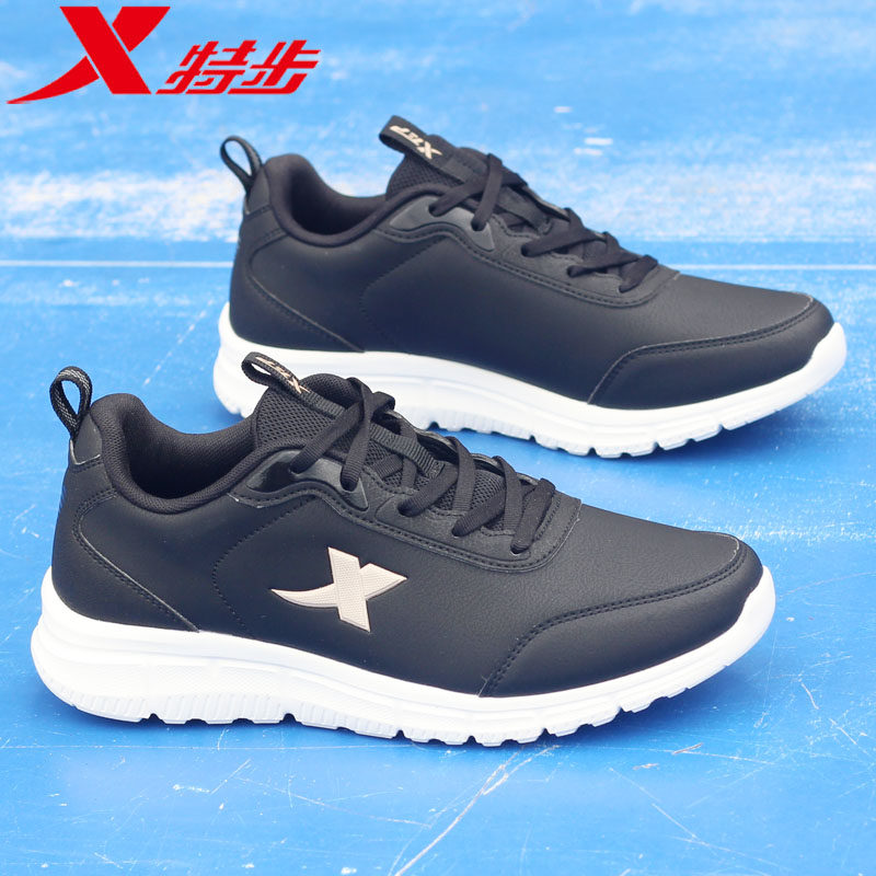 特步运动鞋女款秋冬防滑皮面防水跑步鞋减震回弹舒适健步鞋轻便款