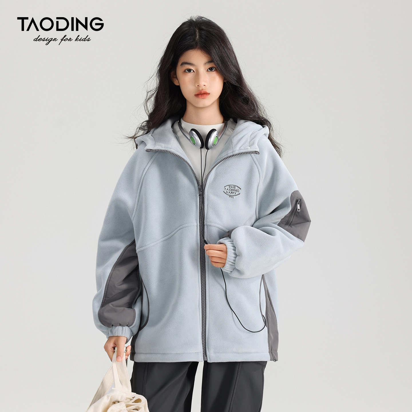 淘町女童双面摇粒绒外套秋冬新款加厚保暖青少年女孩上衣儿童卫衣