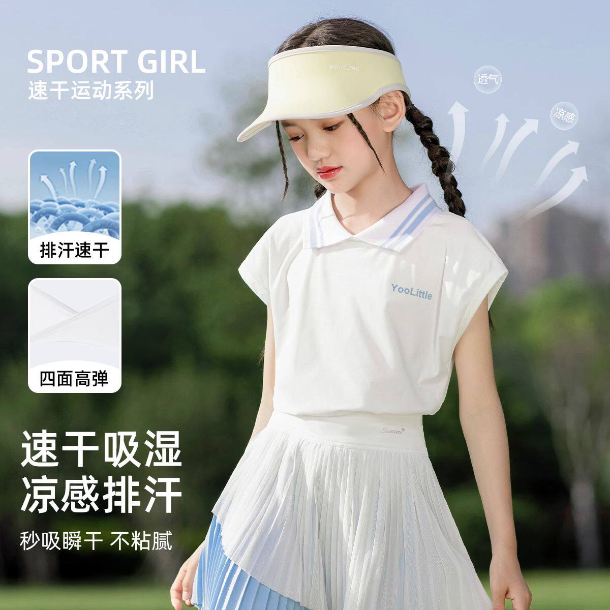 女童运动套装网球服夏季2026新款儿童凉感薄款百褶裙子短袖速干衣