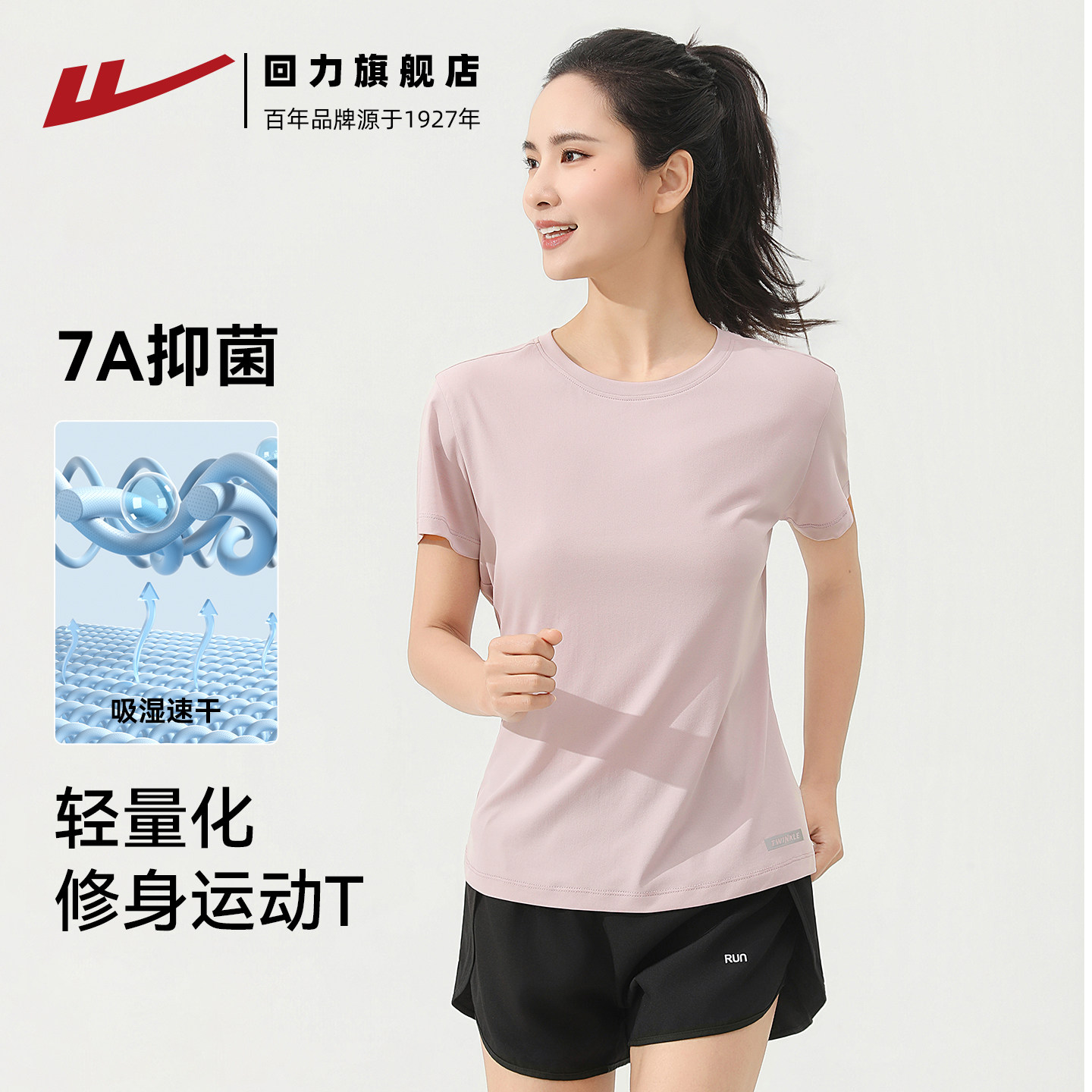 311线报网描述:速干短袖t恤女新款夏薄款修身粉色瑜伽内搭